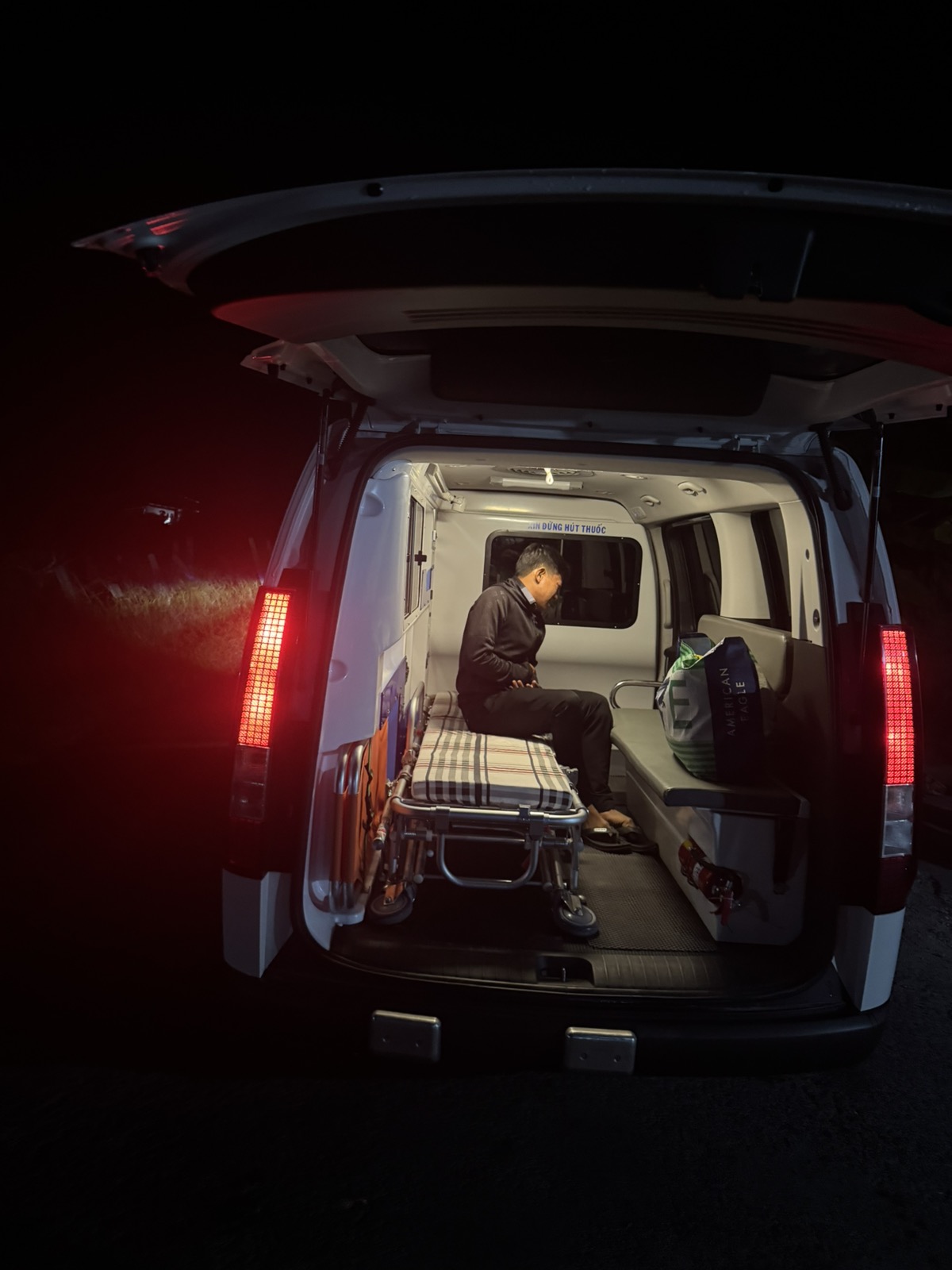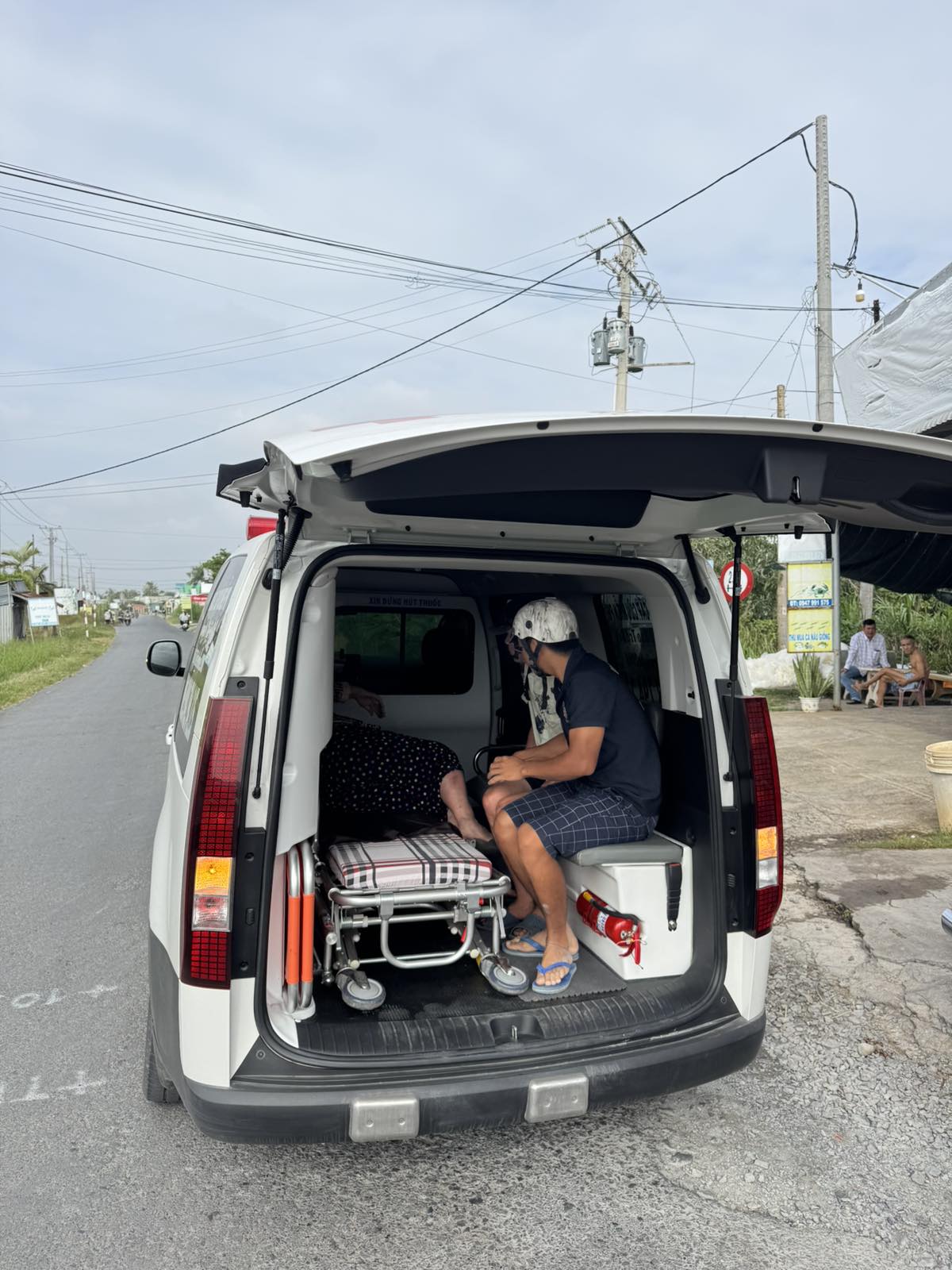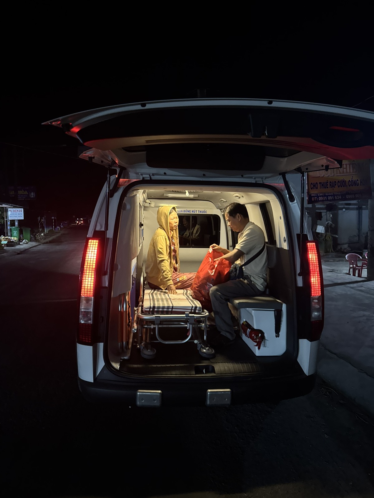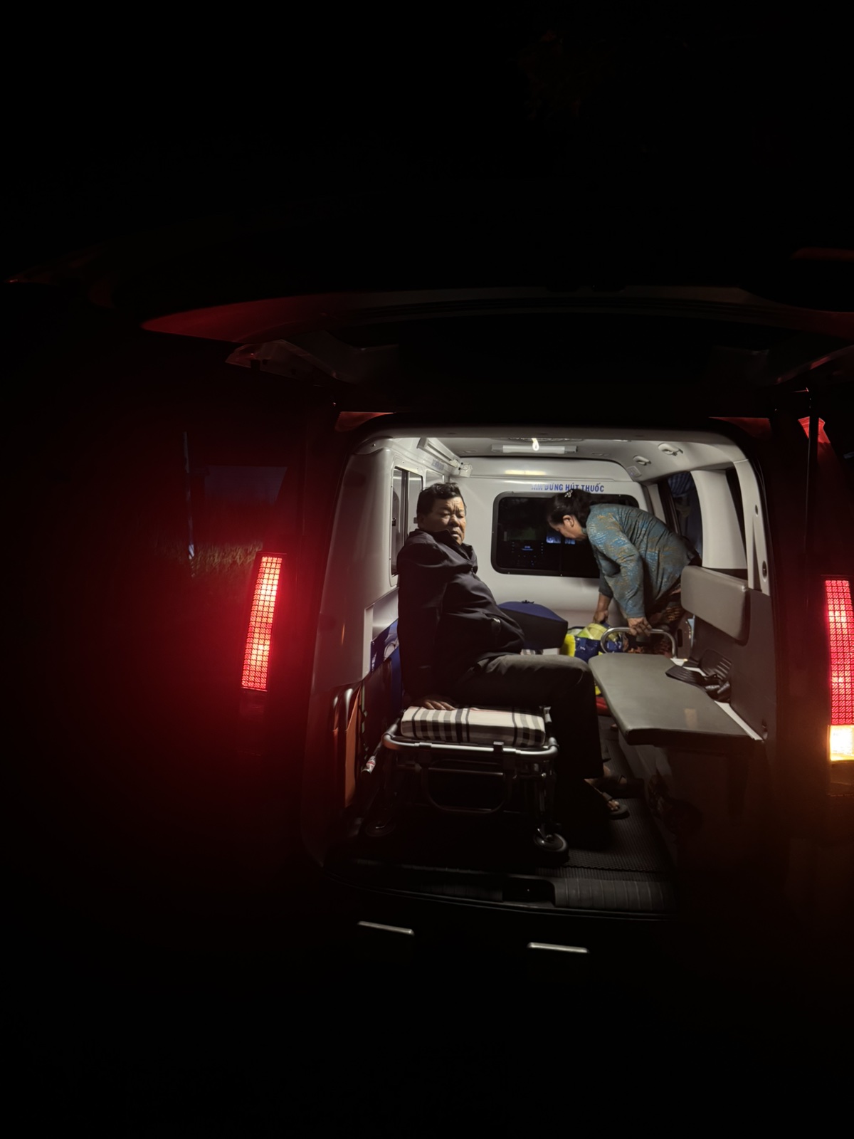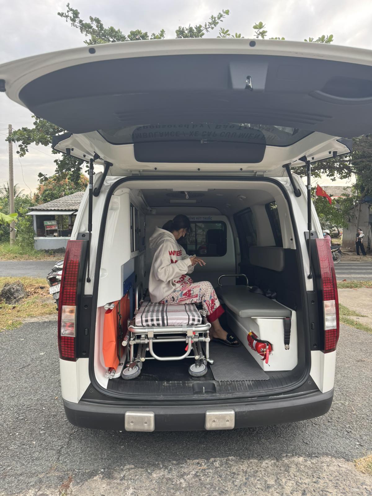 Dưới đây là hình ảnh của từng bệnh nhân lúc lên xe Cấp Cứu và lúc đến nhà thương:
