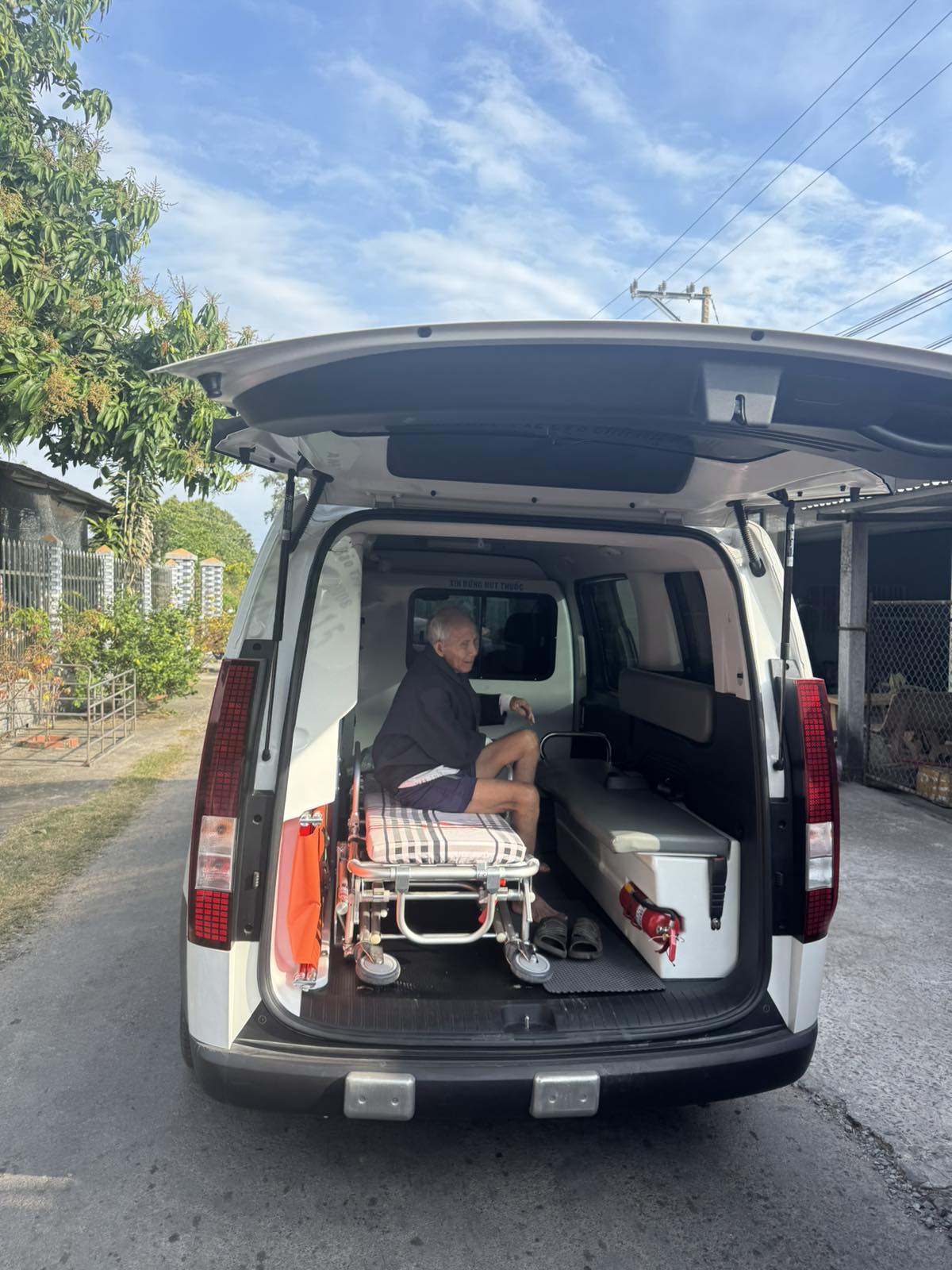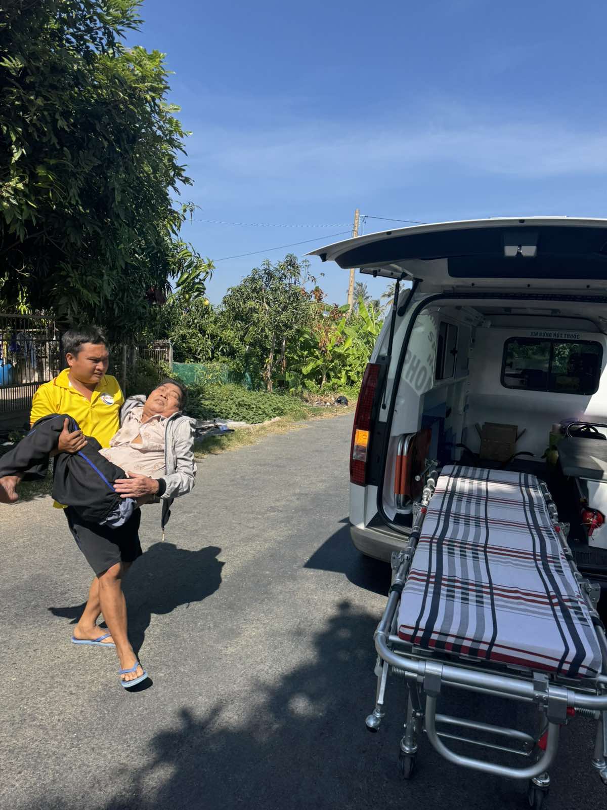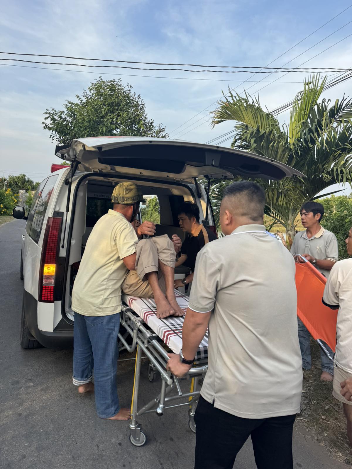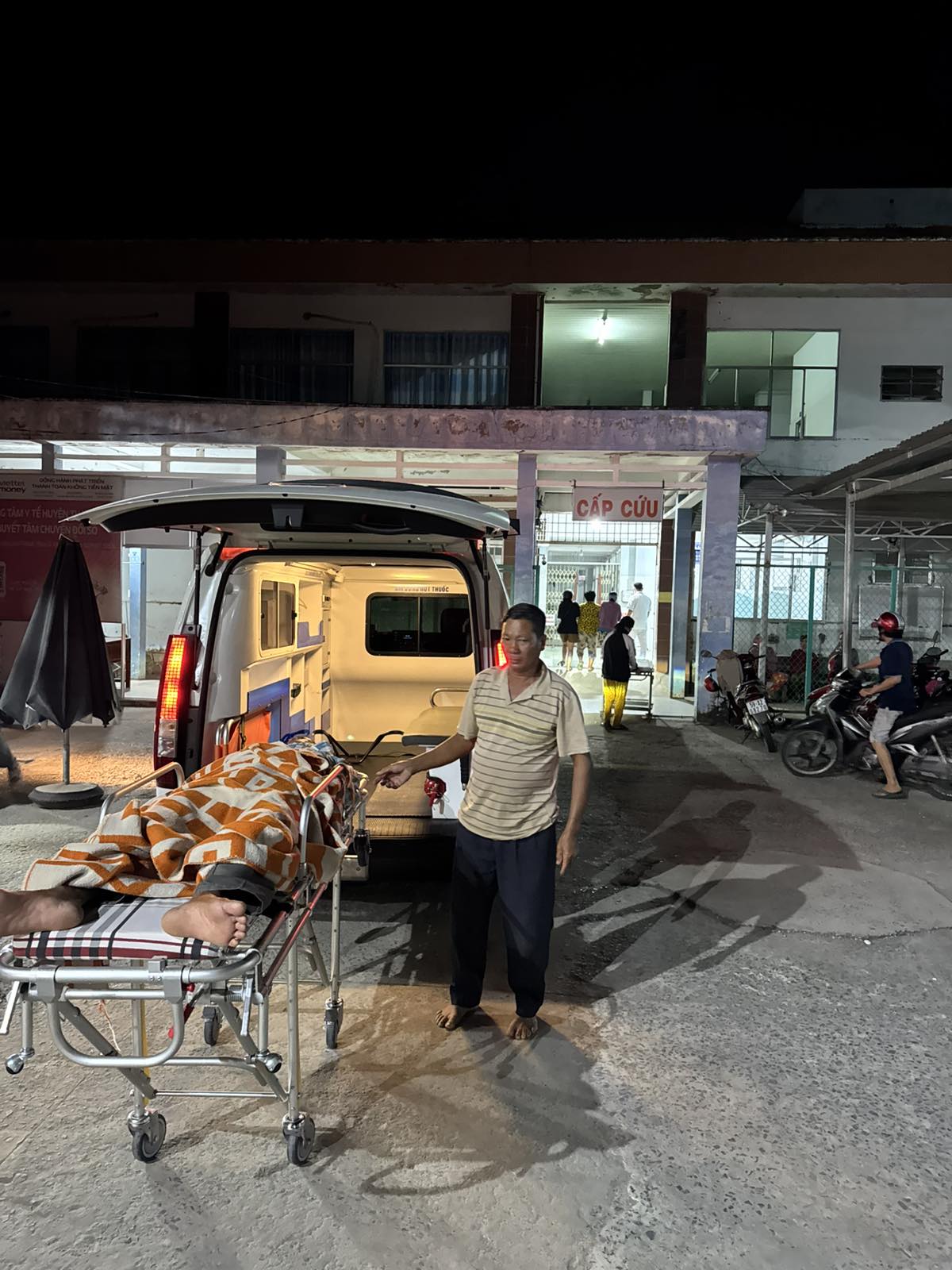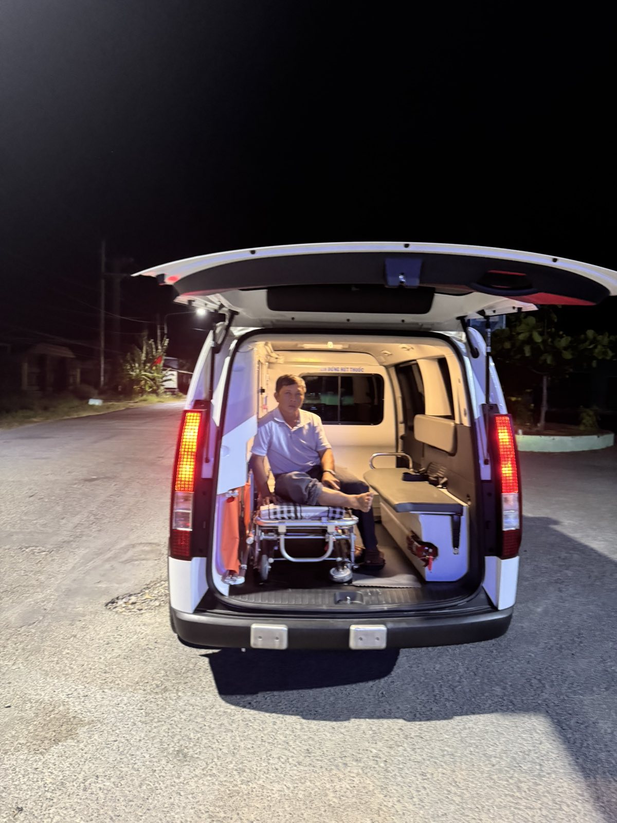 Mr. Luu Van Hoang, 60 years old, lives in Bon Bon, Thanh Phong commune, Thanh Phu district, Ben Tre province. He has complications from diabetes, causing paralysis in both legs. The ambulance took him to Ben Tre hospital at 3:45 p.m. on January 18, 2025. He currently lives with his wife and children.