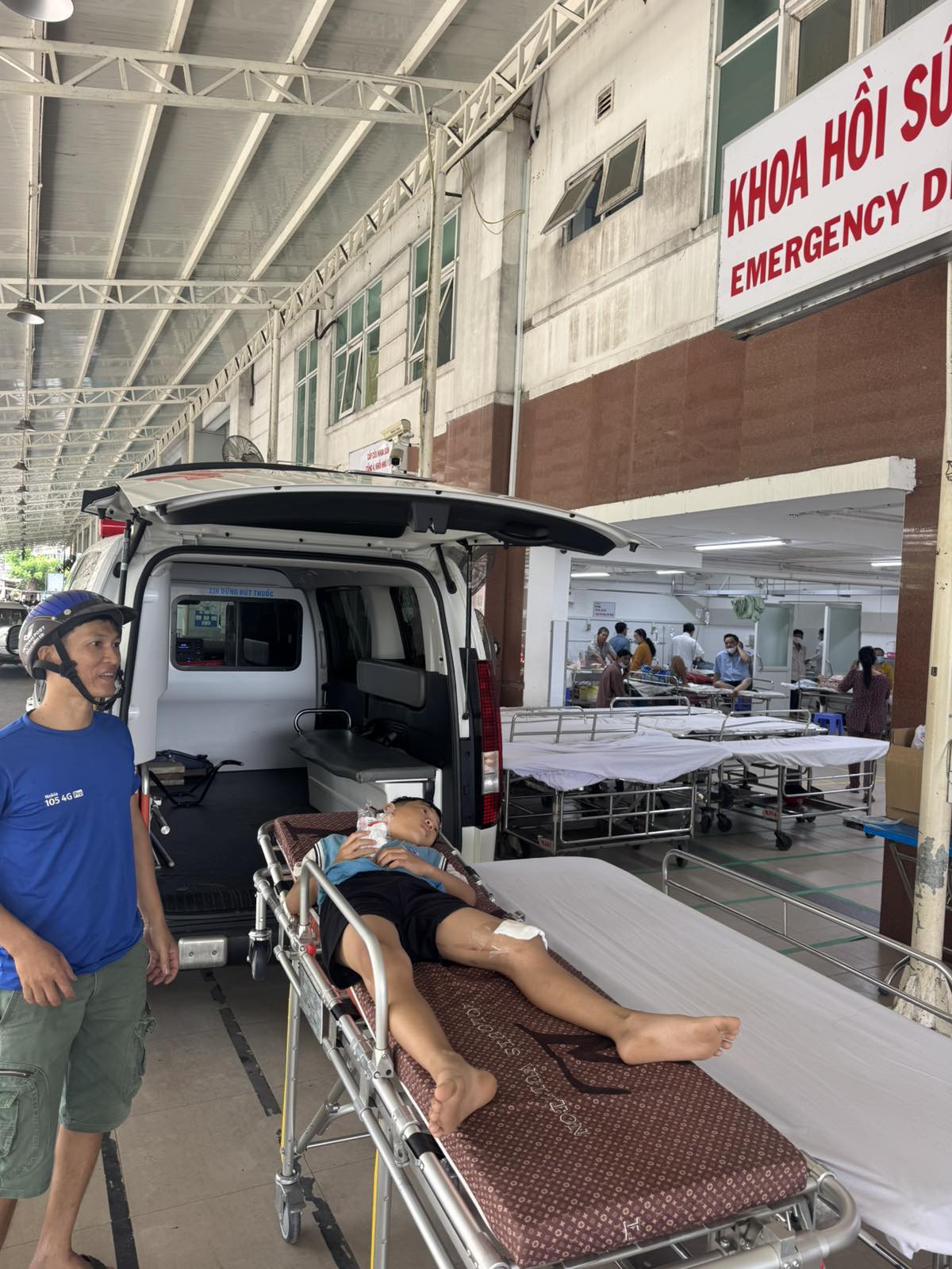 Mr. Phan Van Be, 36 years old, lives in Con Dai, Thanh Phong commune, Thanh Phu district, Ben Tre province. He had a motorbike accident, causing a laceration to his scalp that could not be stopped. The ambulance took her to Thanh Phu hospital at 9:15 p.m. on June 21, 2025.