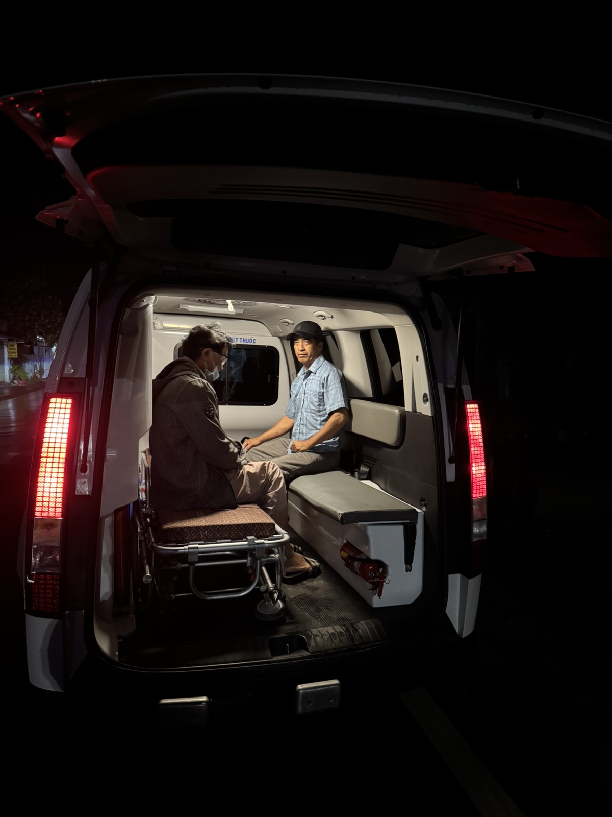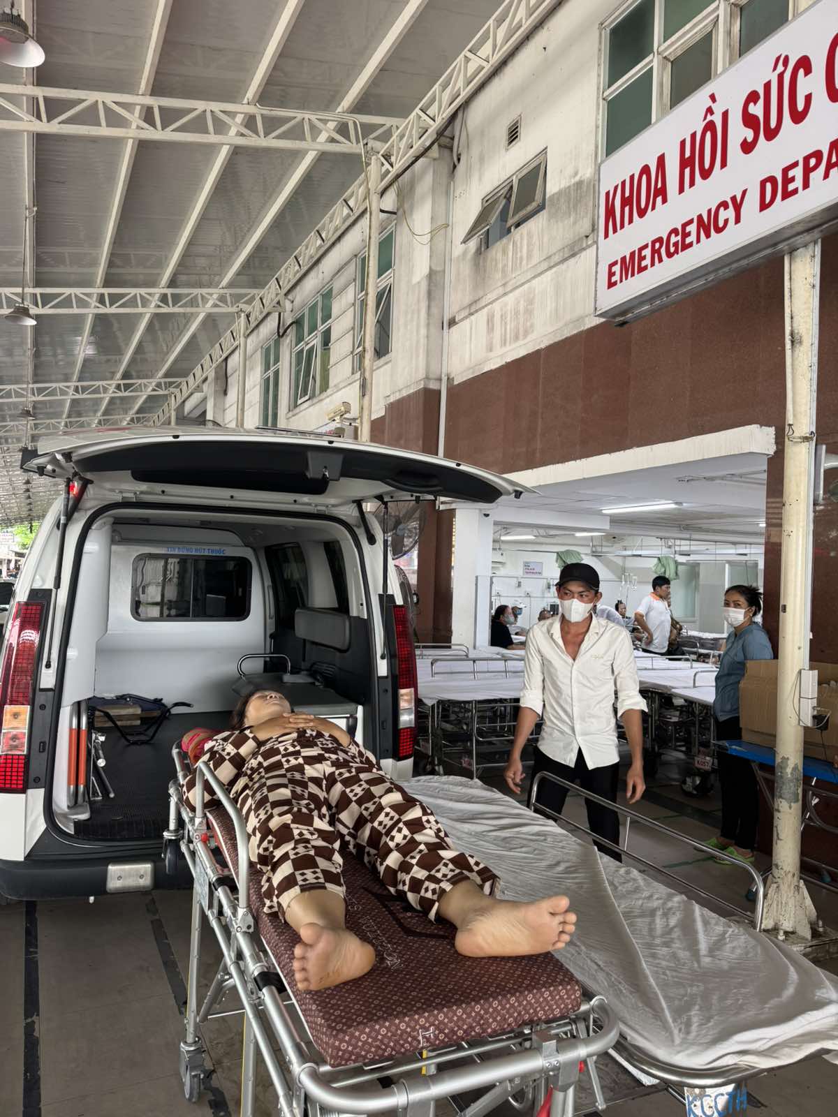 Dưới đây là hình ảnh của từng bệnh nhân lúc lên xe Cấp Cứu và lúc đến nhà thương: