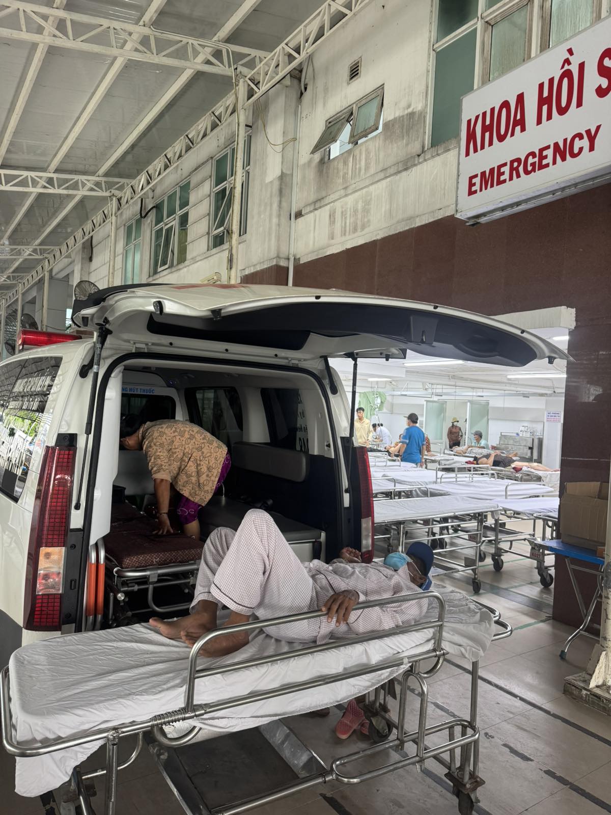 Ms. Dinh Thi Dep, 52 years old, lives in Cong Ho, Giao Thanh commune, Thanh Phu district, Ben Tre province. She vomited blood, and was taken by ambulance to Ben Tre hospital at 12:45 on June 19, 2025.
