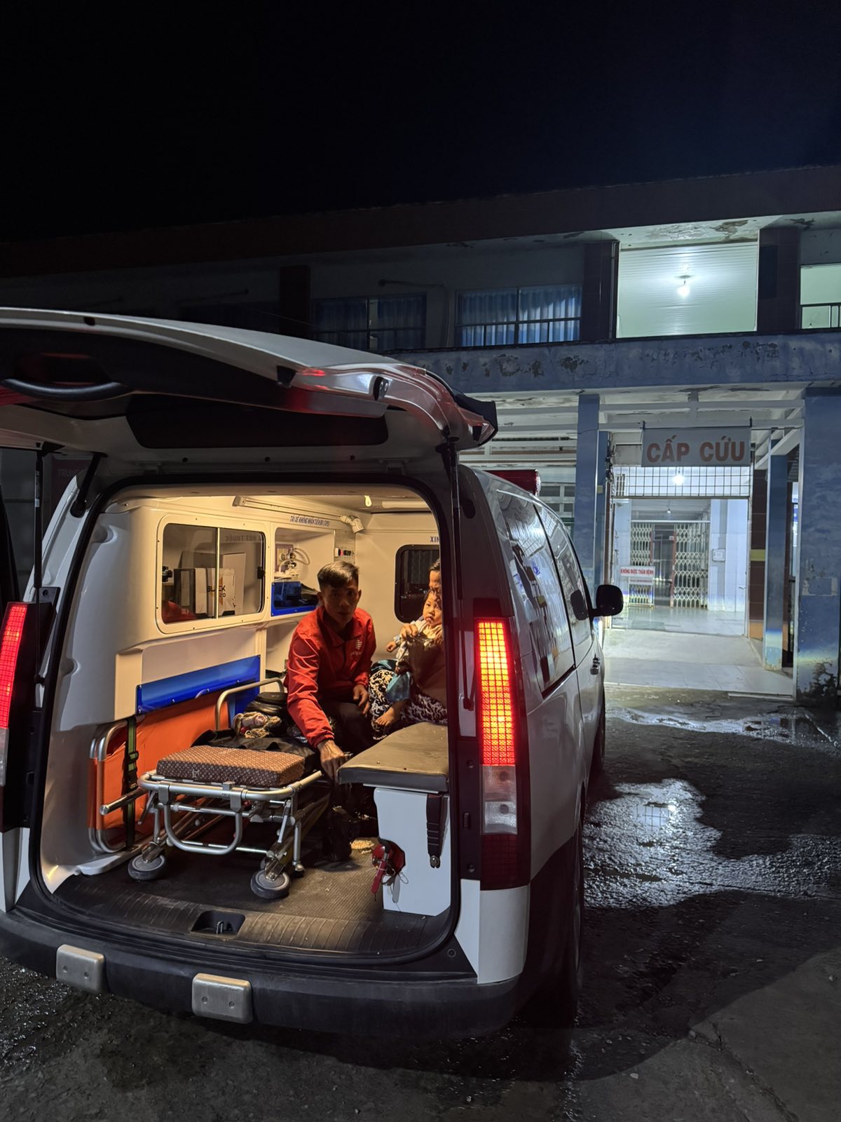 Ms. Tran Thi Thanh, 75 years old, lives in Giong Bang, Giao Thanh Commune, Thanh Phu District, Ben Tre Province. She suffered from heart failure, and was taken to Ben Tre Hospital by ambulance at 9:15 p.m. on June 18, 2025. She currently lives with her children.