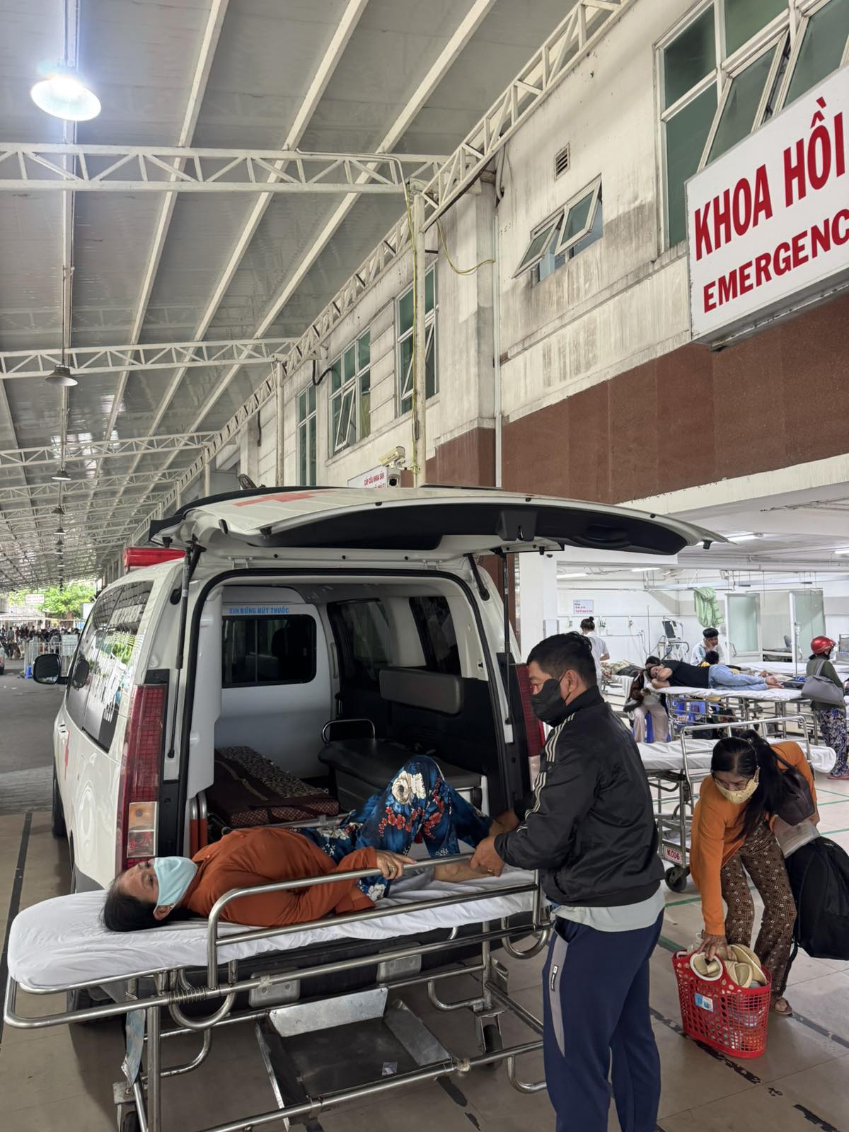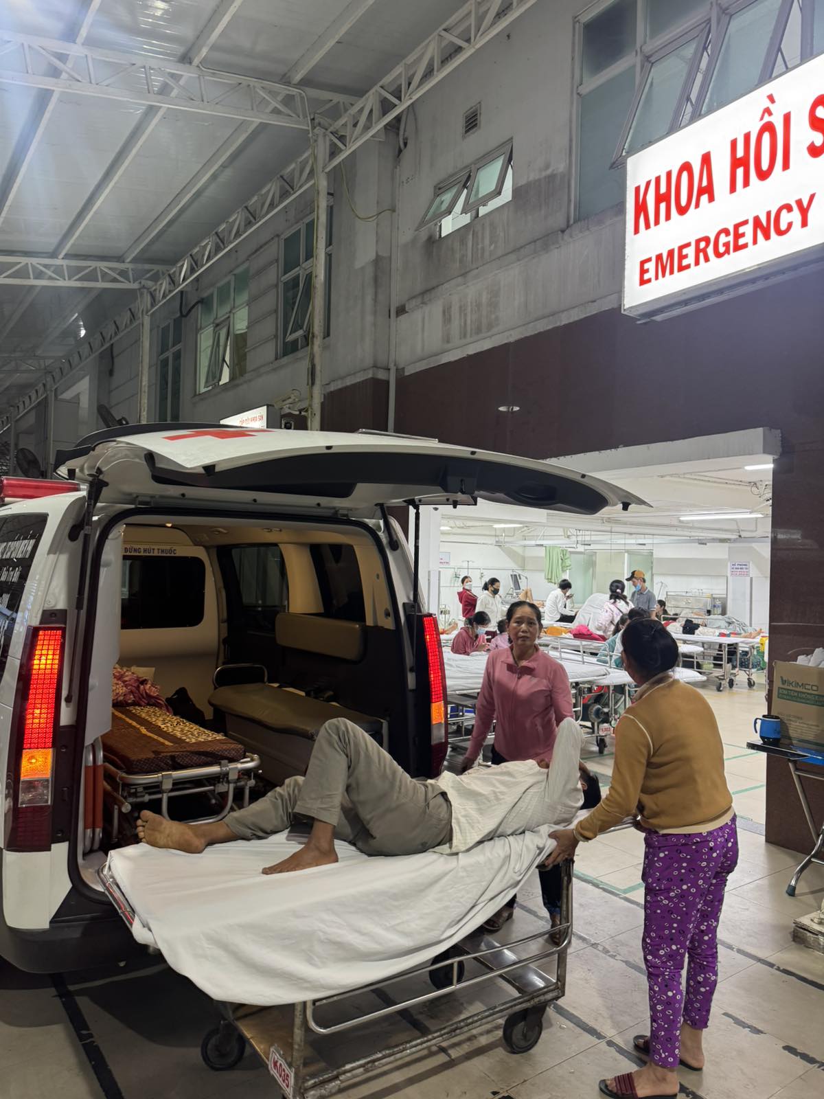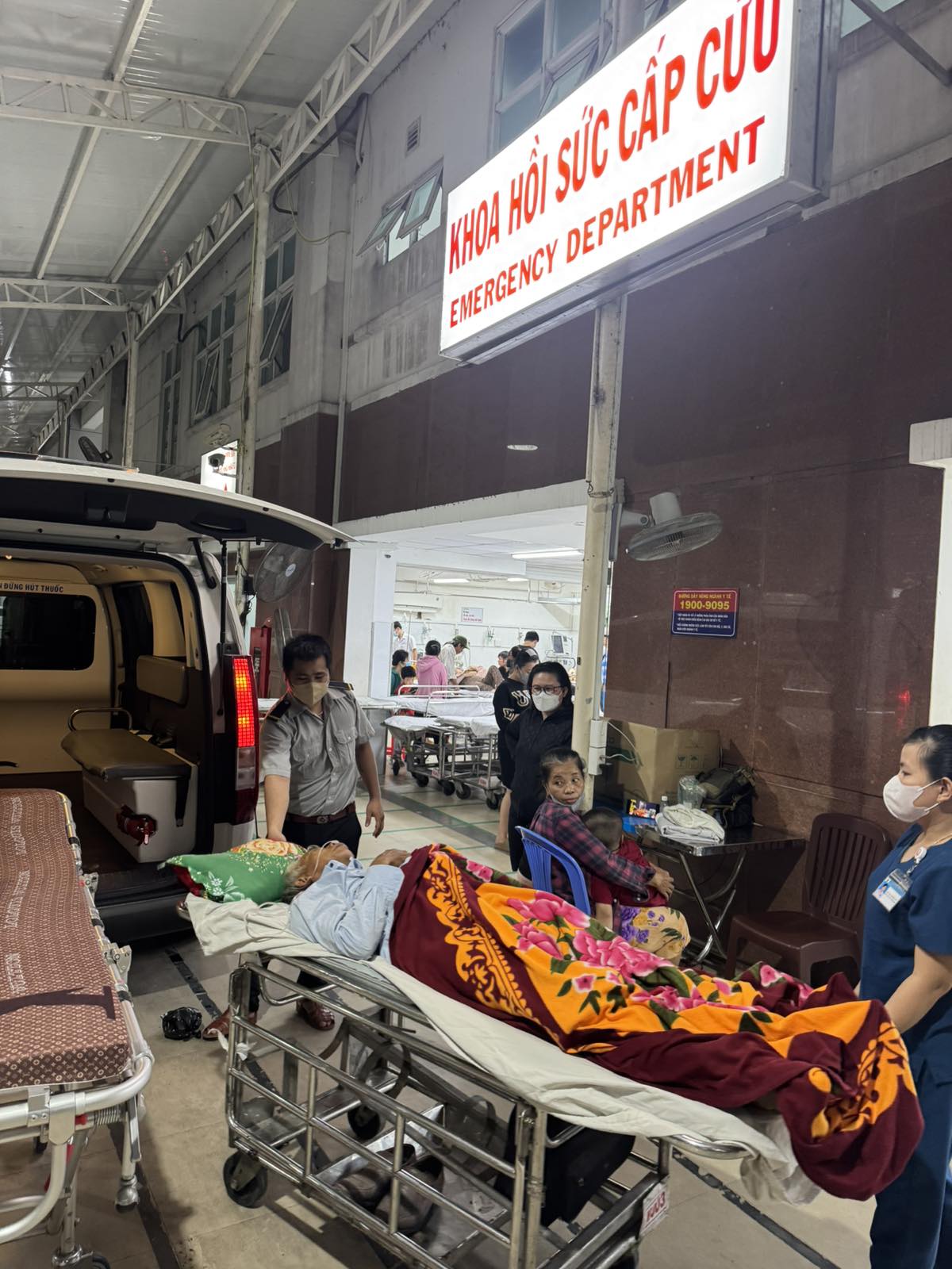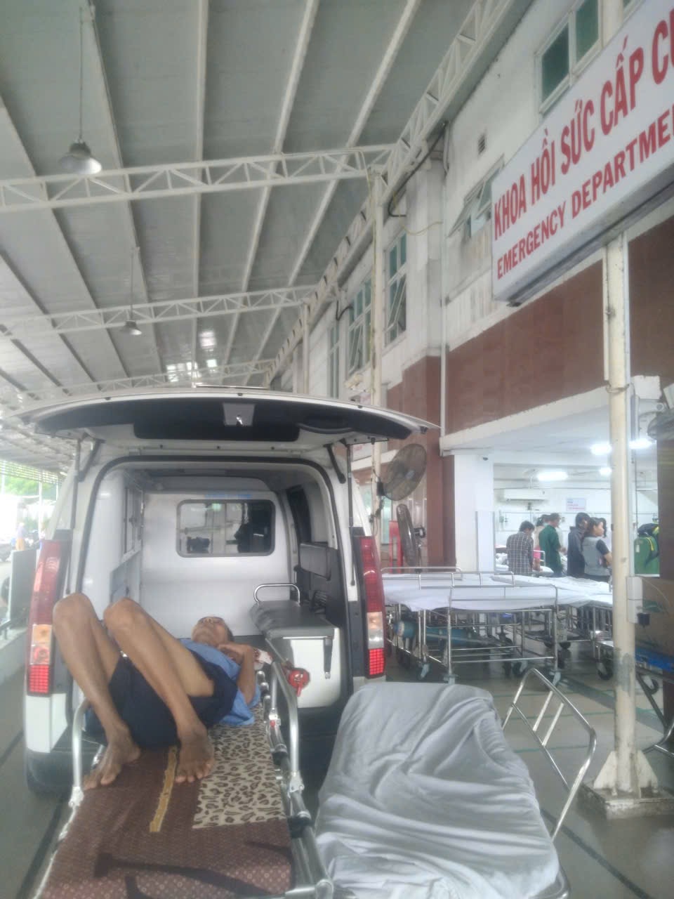 Dưới đây là hình ảnh của từng bệnh nhân lúc lên xe Cấp Cứu và lúc đến nhà thương:
