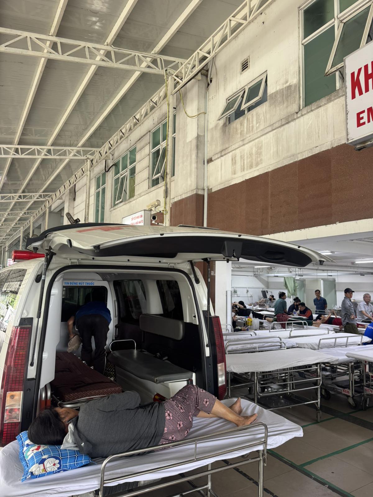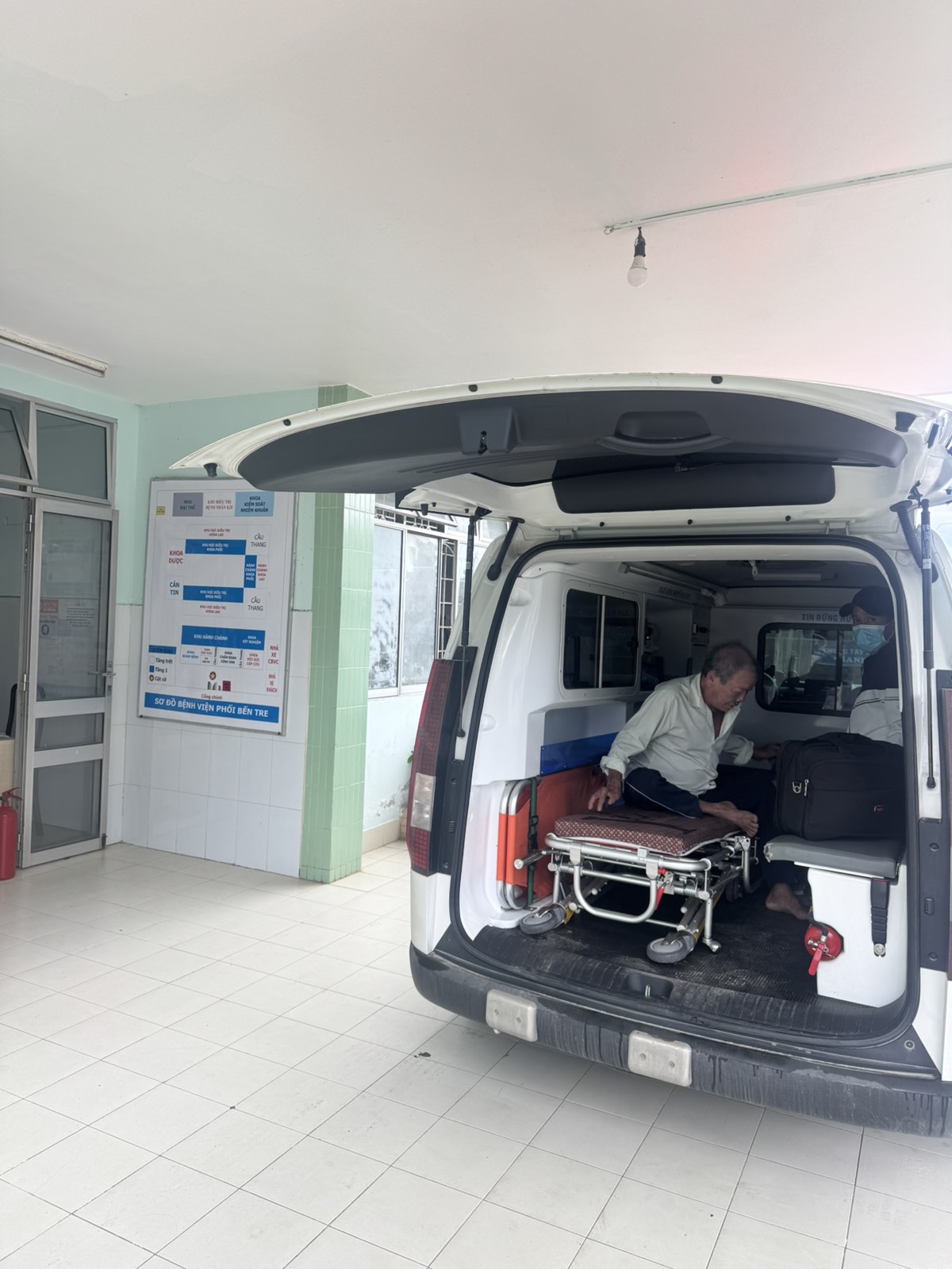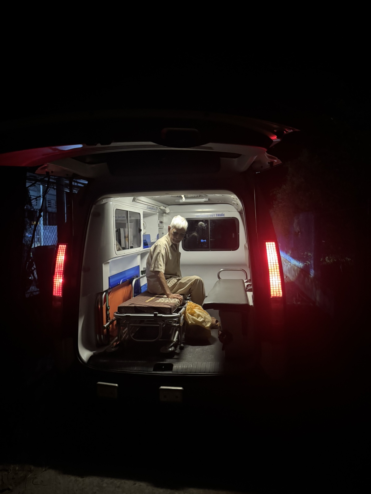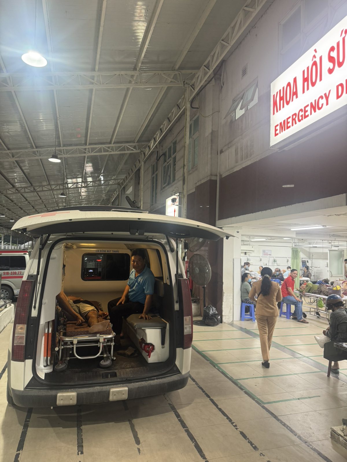 Dưới đây là hình ảnh của từng bệnh nhân lúc lên xe Cấp Cứu và lúc đến nhà thương: