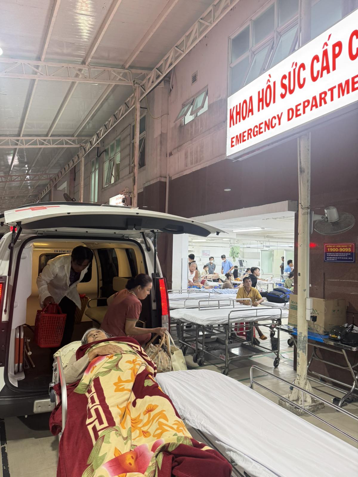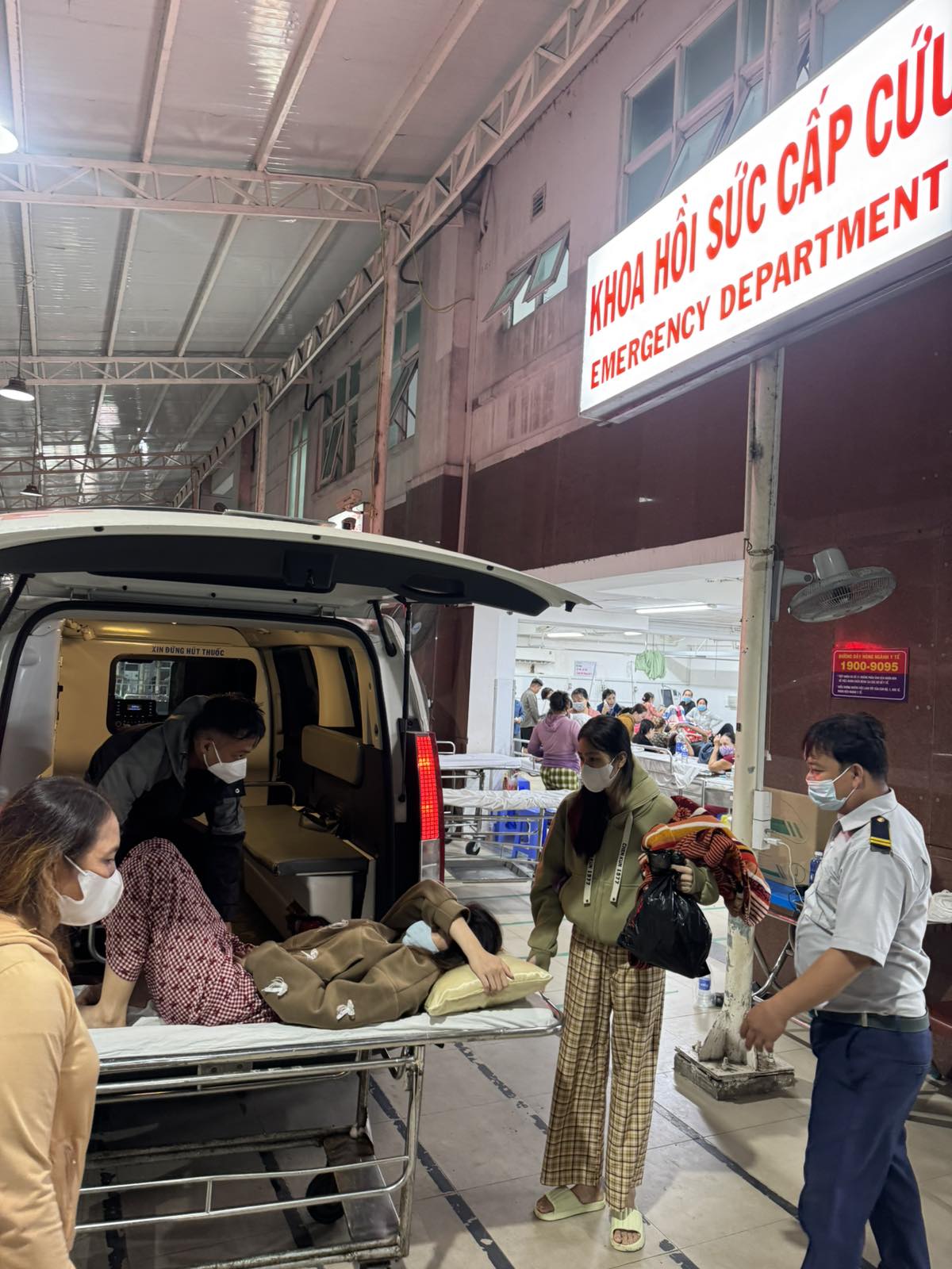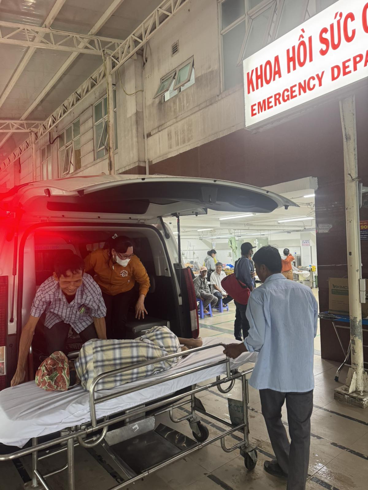 Dưới đây là hình ảnh của từng bệnh nhân lúc lên xe Cấp Cứu và lúc đến nhà thương: