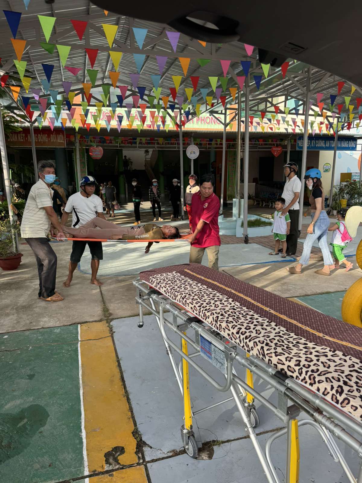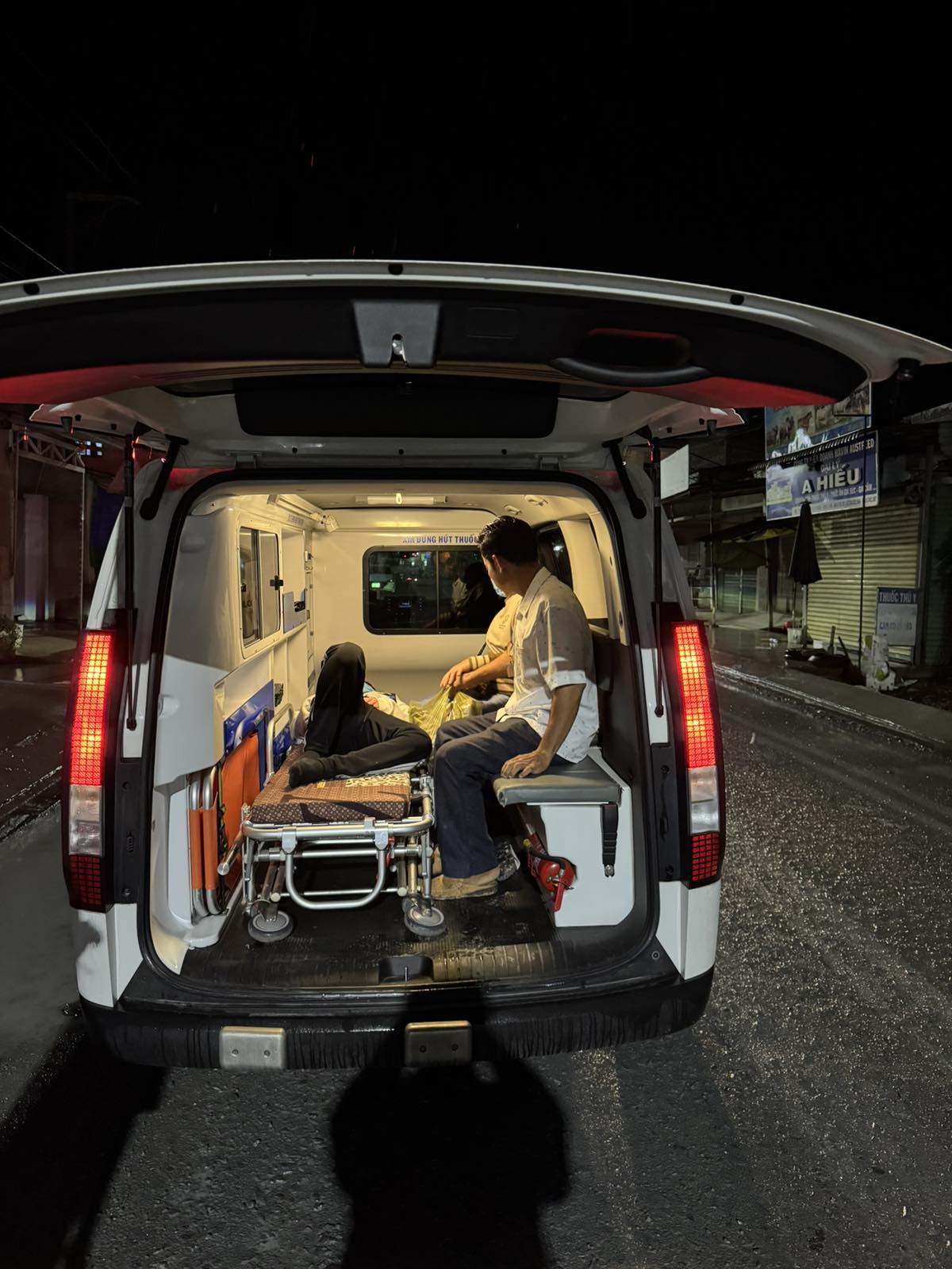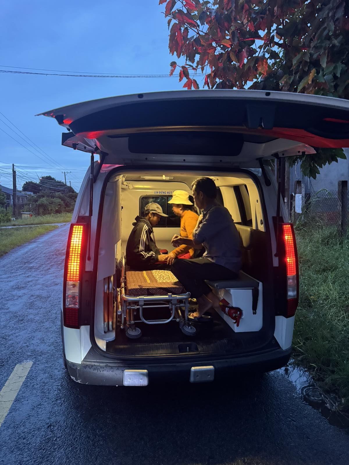Dưới đây là hình ảnh của từng bệnh nhân lúc lên xe Cấp Cứu và lúc đến nhà thương: