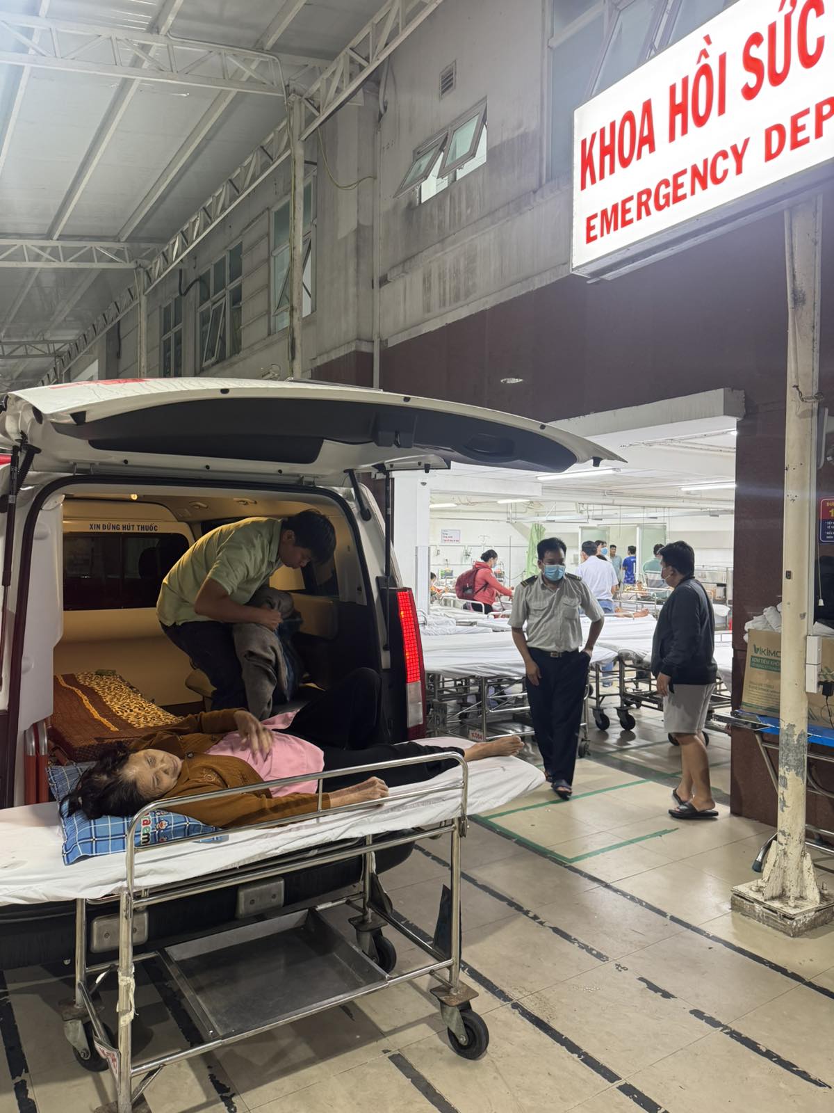 Mrs. Trương Thị Hồng, 80 years old, lives in Khâu Băng, Thạnh Phong commune, Vĩnh Long province. She felt unwell. An ambulance transported her to Bến Tre Hospital at 08:00 on September 30, 2025. She currently lives with her child.