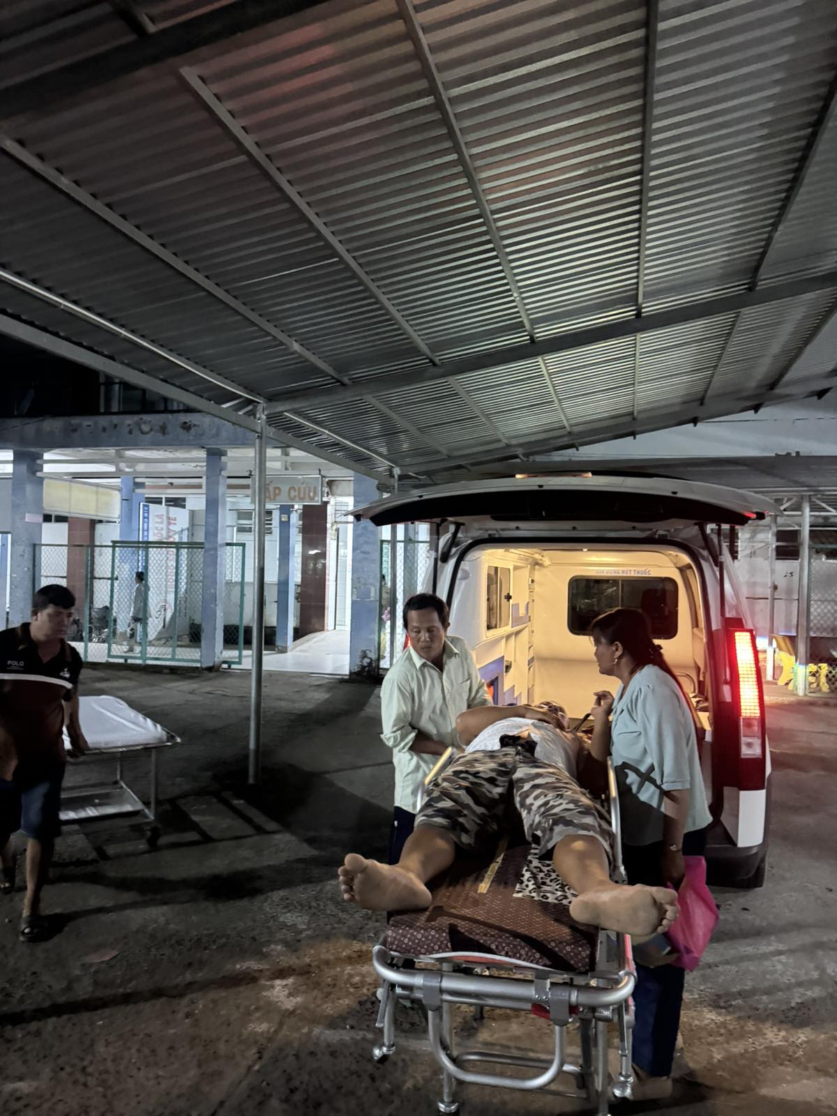 Mr. Cao Văn Phước, 56 years old, lives in Cồn Mít, Thạnh Phong commune, Vĩnh Long province. He felt unwell due to complications from kidney failure. An ambulance transported him to Bến Tre Hospital at 19:30 on September 21, 2025. He currently lives with his wife and child. The staff gave him a bottle of medicated green oil.