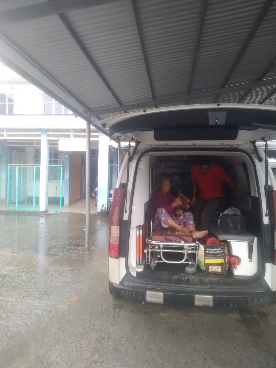 Below are the pictures of patients getting on the ambulance and getting off at the hospital: