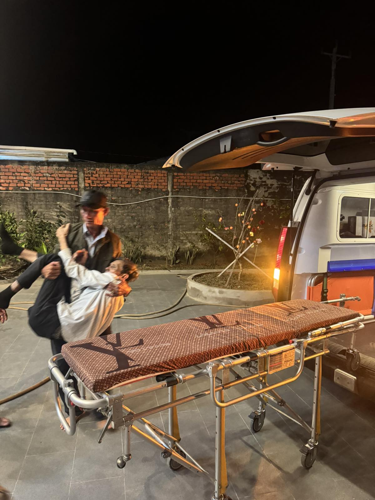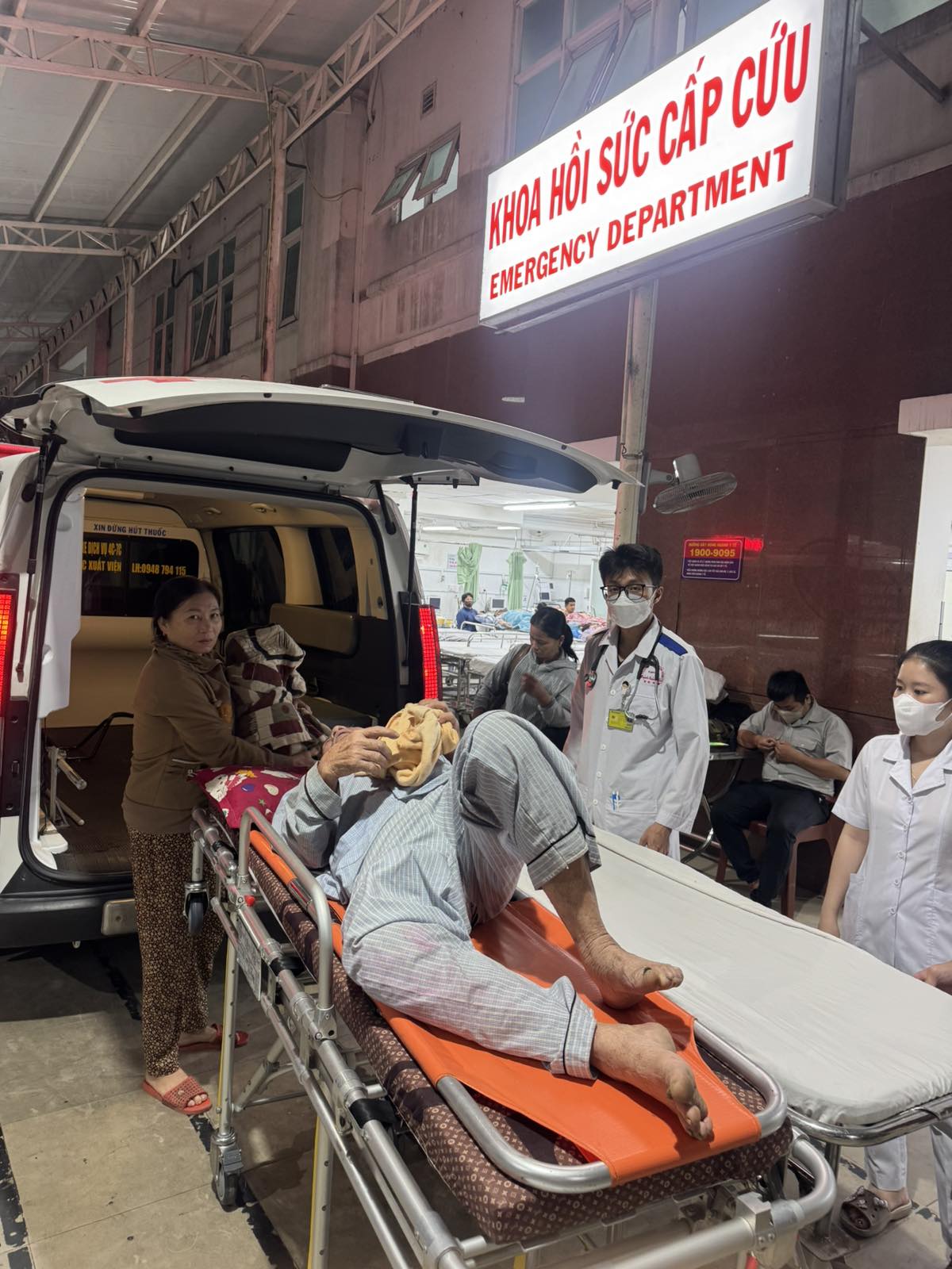 Mr. Lưu Văn Đấu, 80, lives in Giồng Bàng Hamlet, Thạnh Phong Commune, Vĩnh Long Province. He suffered a stroke and was transported by ambulance to Bến Tre Hospital at 11:00 p.m. on February 2, 2026. He currently lives with his children and grandchildren.