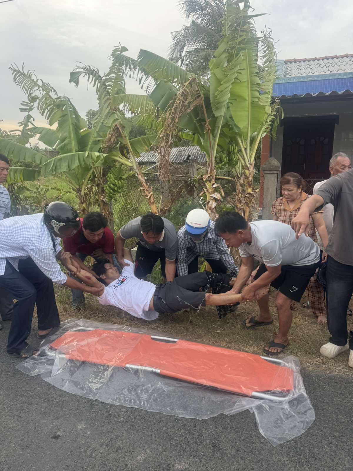 Mr. Trần Văn Vũ, 44, lives in Mỹ An Hamlet, Thạnh Phú Commune, Vĩnh Long Province. He was involved in a motorcycle accident resulting in a head injury. He was transported by ambulance to Bến Tre Hospital at 3:00 p.m. on February 3, 2026. He currently lives with his wife and child.
