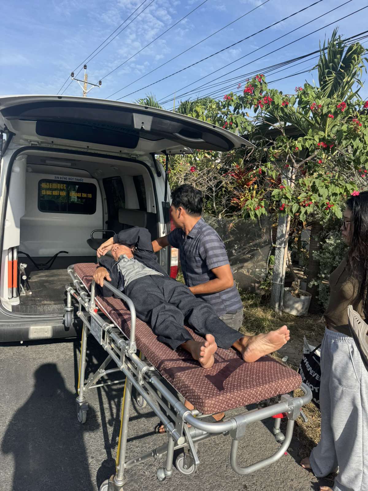 Mr. Đặng Văn Điệp, 73, lives in Giồng Bàng Hamlet, Thạnh Phong Commune, Vĩnh Long Province. He suffered a stroke and was transported by ambulance to Bến Tre Hospital at 9:00 a.m. on February 1, 2026. He currently lives with his child.