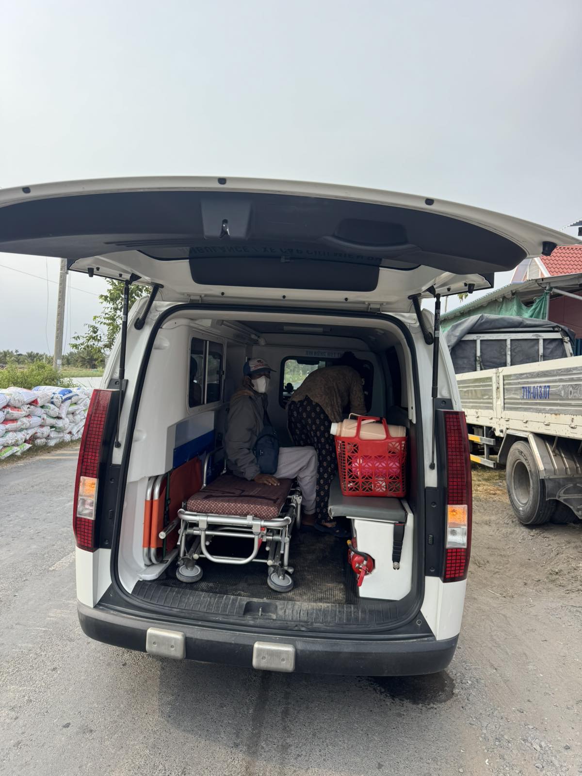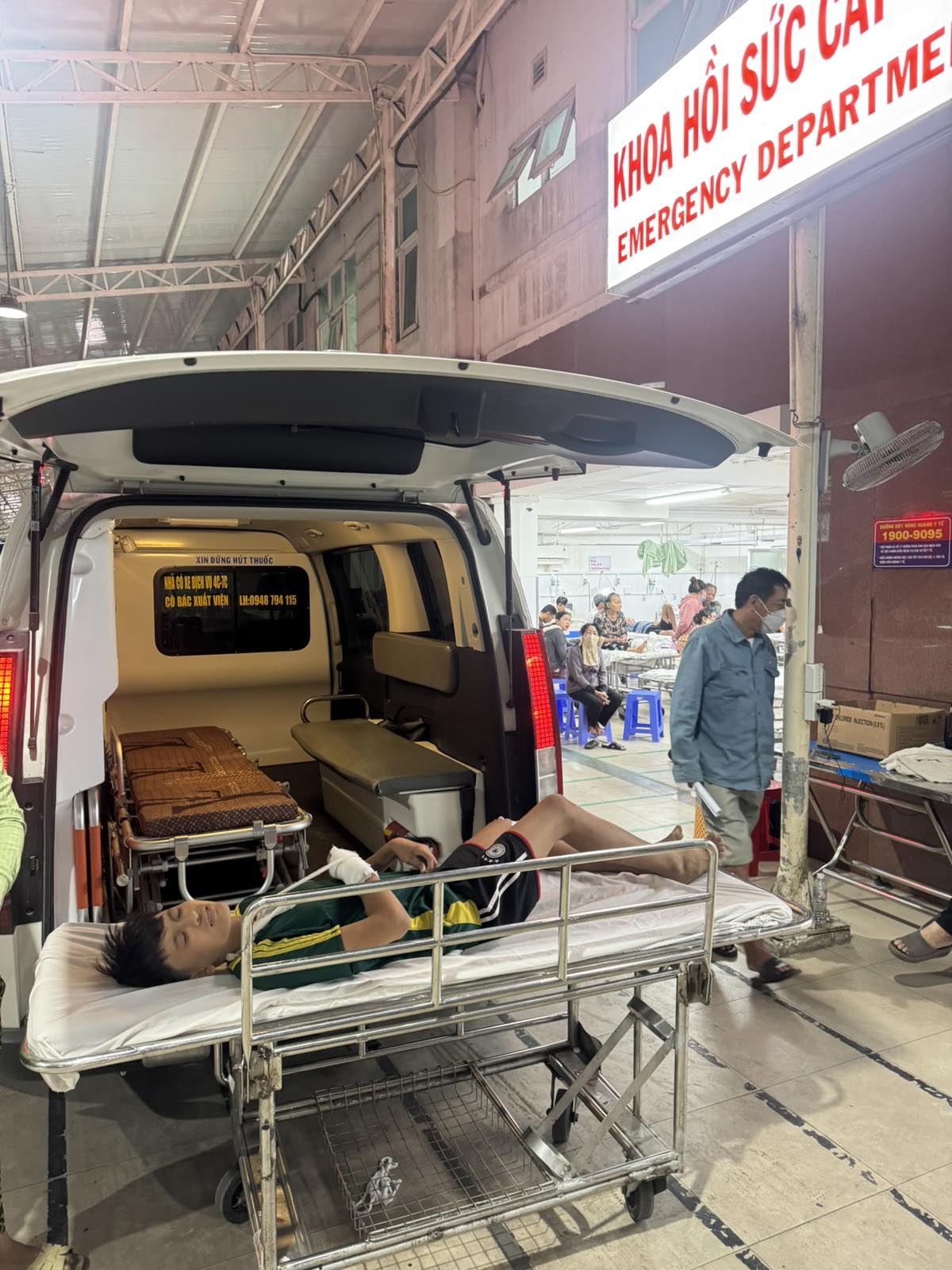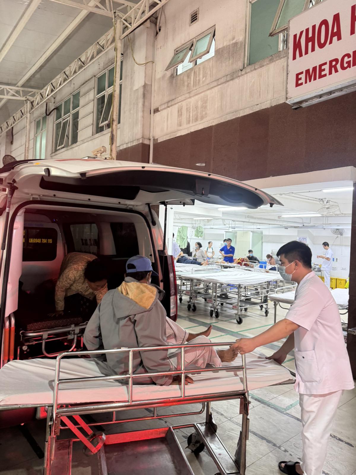 Dưới đây là hình ảnh của từng bệnh nhân lúc lên xe Cấp Cứu và lúc đến nhà thương: