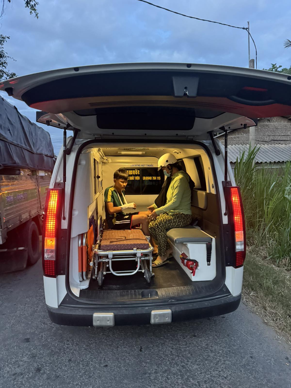 Trần Văn Thái, 13, lives in Cồn Điệp Hamlet, Thạnh Phong Commune, Vĩnh Long Province. He fell off his bicycle and broke his arm. He was transported by ambulance to Bến Tre Hospital at 6:15 p.m. on February 11, 2026. He currently lives with his father and mother.