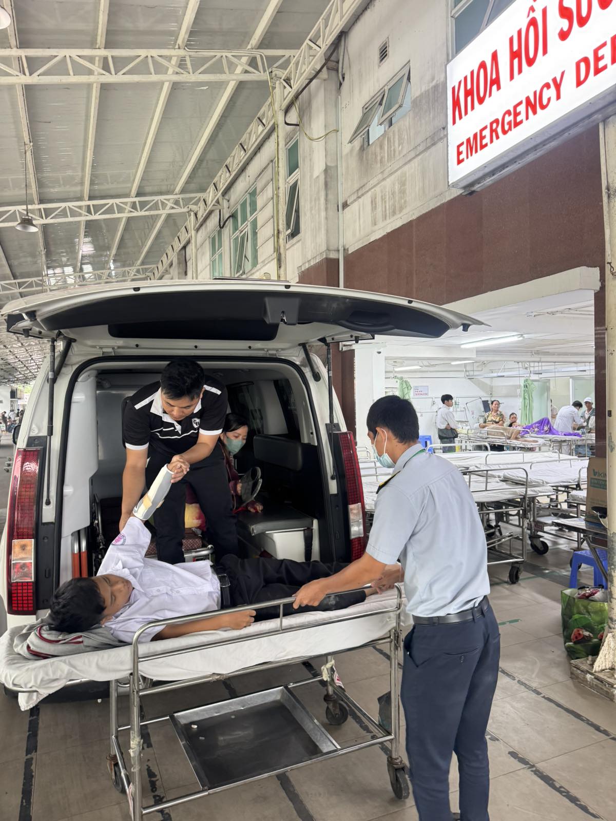 Dưới đây là hình ảnh của từng bệnh nhân lúc lên xe Cấp Cứu và lúc đến nhà thương: