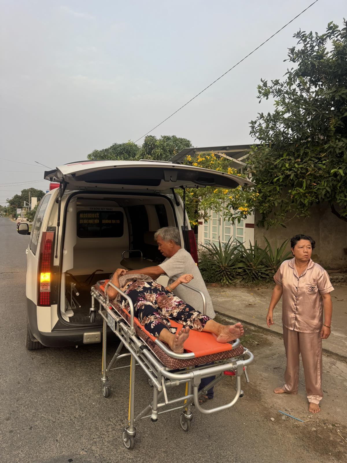 Ms. Nguyễn Thị Dư, 85 years old, lives in Bồn Bồn hamlet, Thạnh Phong Commune, Vĩnh Long Province. She was fatigued and had convulsions. She was transported by ambulance to Thạnh Phú Hospital at 5:30 a.m. on January 7, 2025. She currently lives with her children.