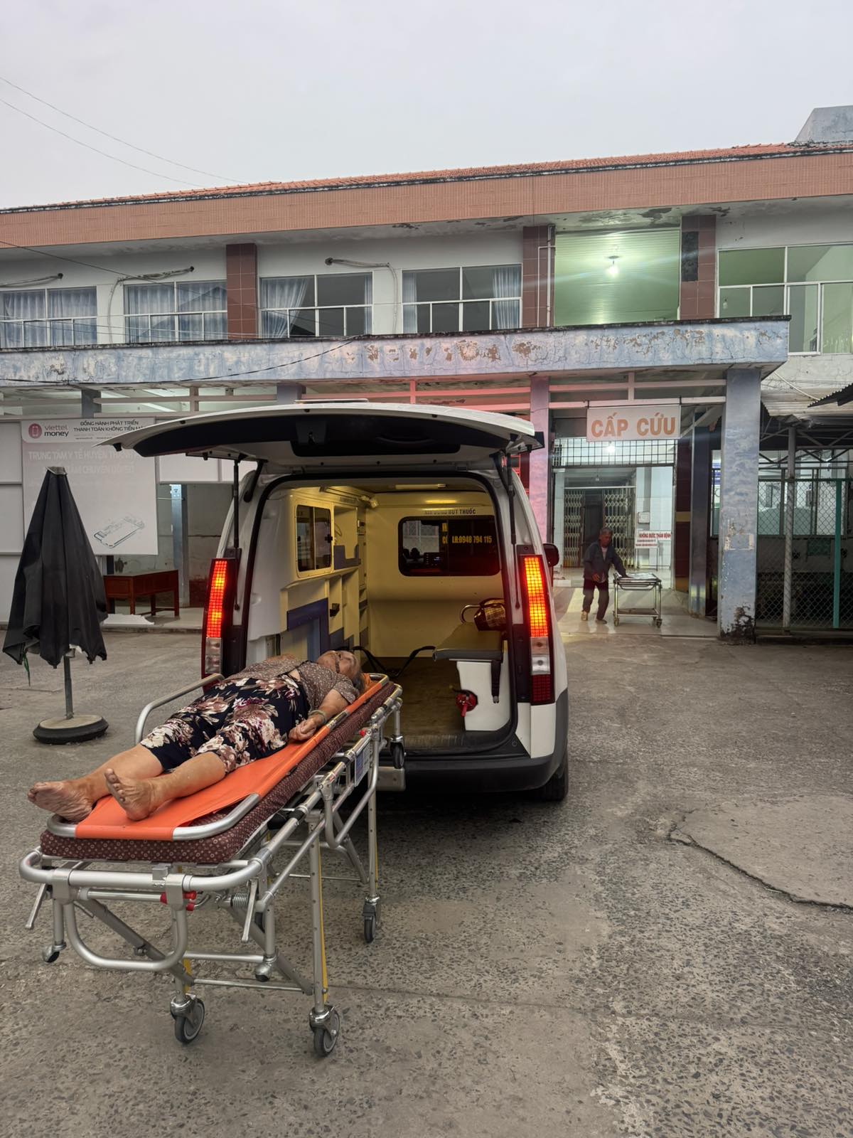 Ms. Đặng Thị Lộc, 65 years old, lives in Giao Thạnh hamlet, Thạnh Phong Commune, Vĩnh Long Province. She was fatigued due to asthma and lung failure. She was transported by ambulance to Bến Tre Hospital at 9:00 a.m. on January 11, 2026. She currently lives with her children.