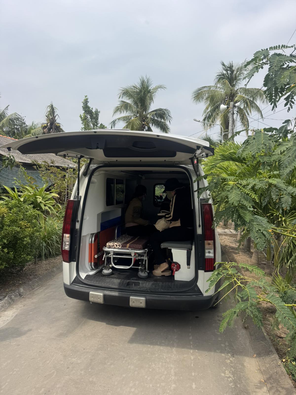 Ms. Lê Thị Út, 93 years old, lives in Nhà Dừa hamlet, Thạnh Hải Commune, Vĩnh Long Province. She was fatigued due to heart failure and was transported by ambulance to Bến Tre Hospital at 8:00 a.m. on January 1, 2026. She currently lives with her children and grandchildren.