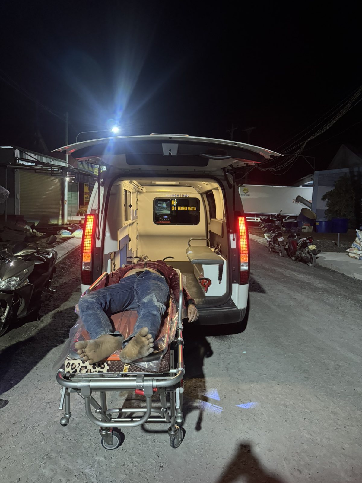 Lại Văn Trung, 75 years old, lives in An Huề Hamlet, An Qui Commune, Vĩnh Long Province. He experienced fatigue due to lung failure. He was transported by ambulance to Bến Tre Hospital at 7:00 a.m. on January 23, 2026. He currently lives with his children.