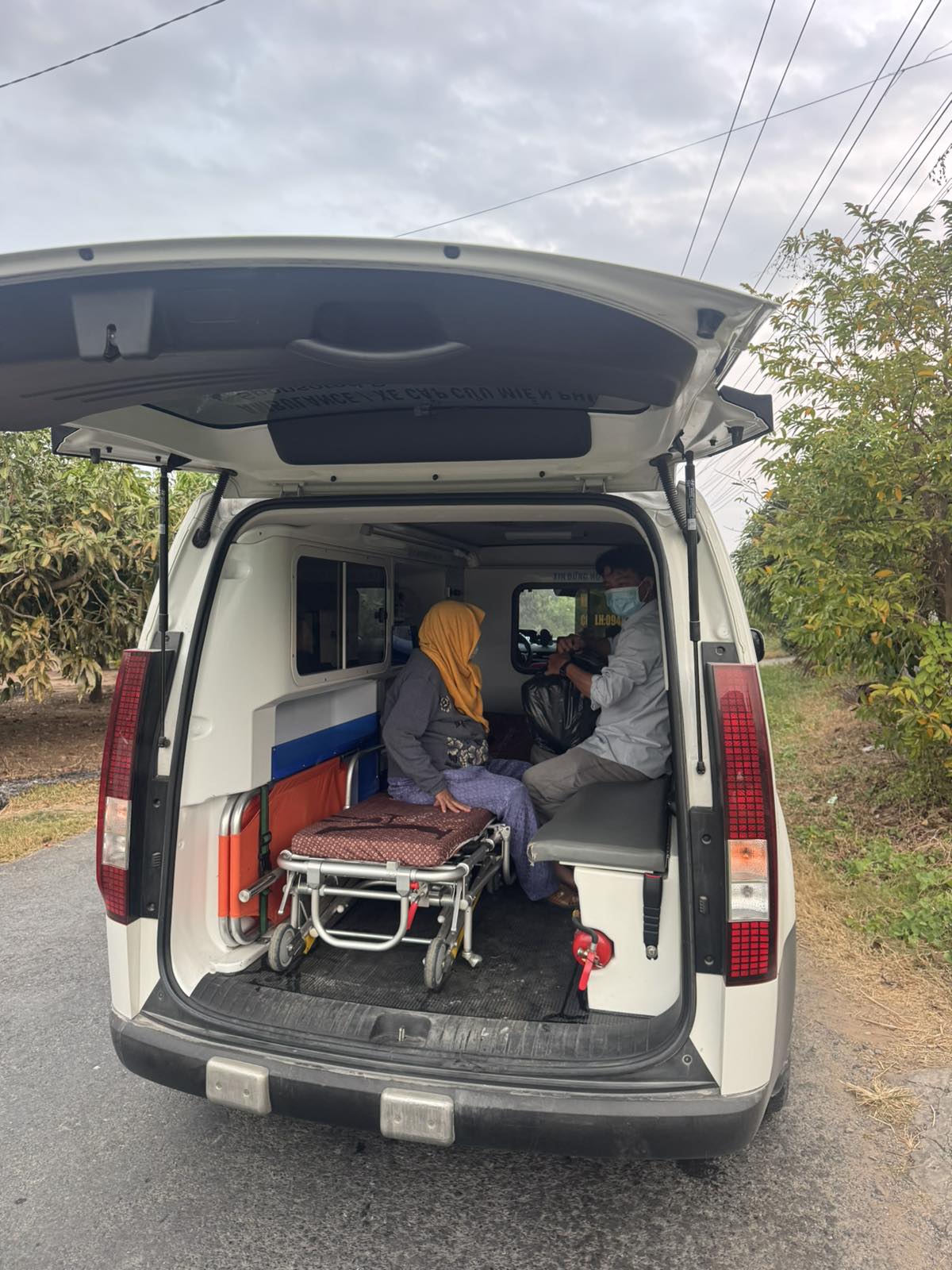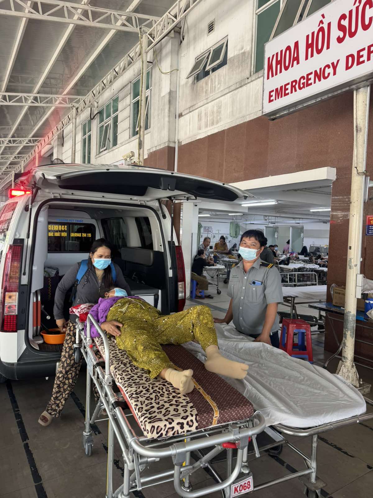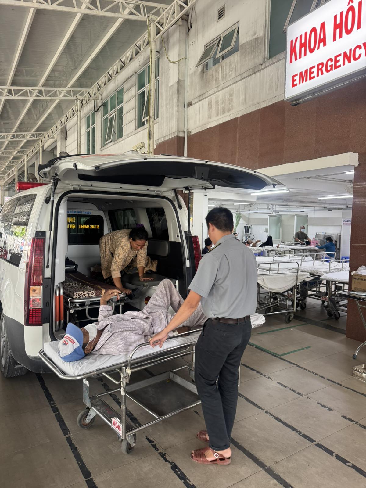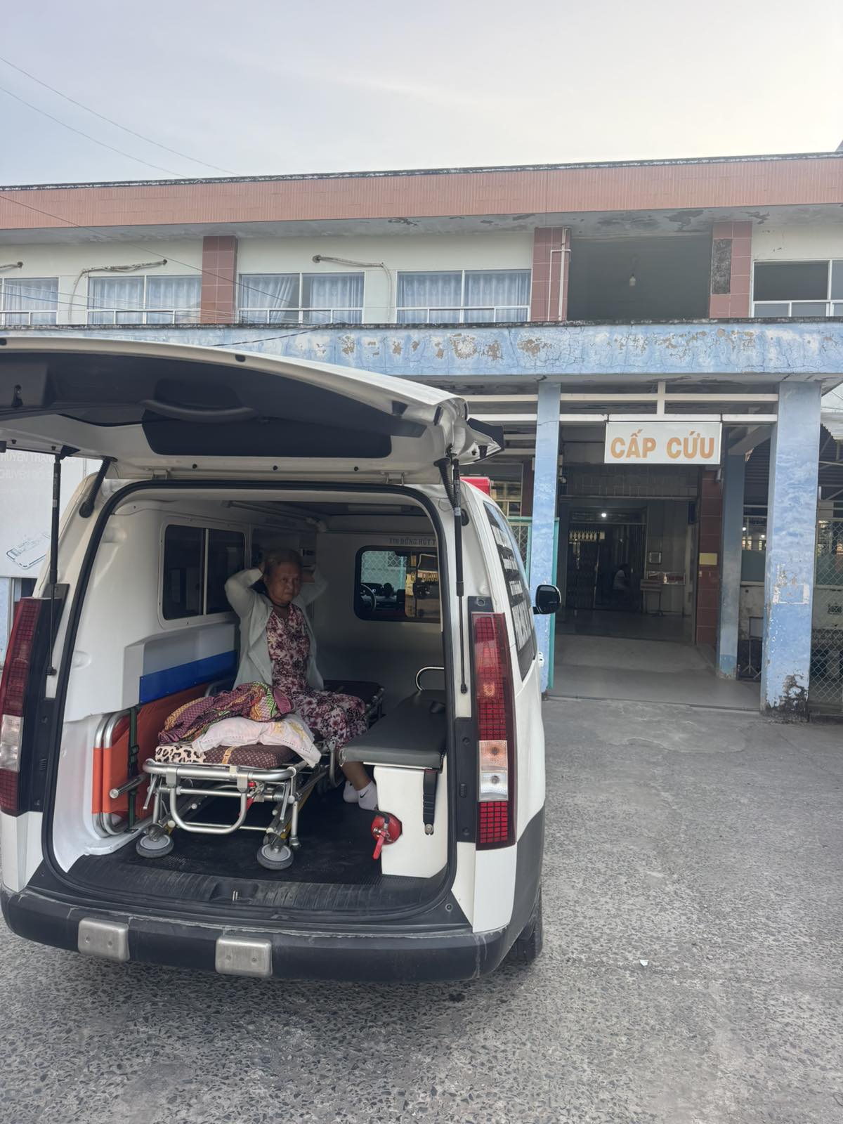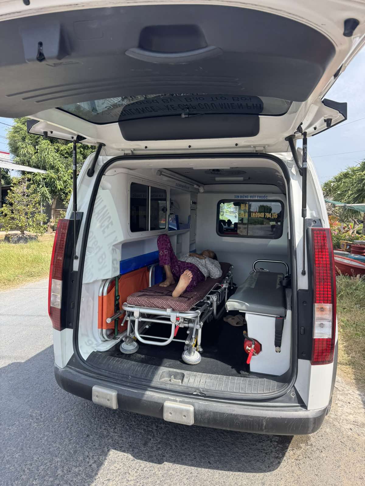 Nguyễn Thị Niềm, 71 years old, lives in Mỹ An, Thạnh Phú Commune, Vĩnh Long Province. She experienced fatigue due to a cerebral hemorrhage (brain bleeding). She was transported by ambulance to Bến Tre Hospital at 6:30 a.m. on January 25, 2026. She currently lives with her children.