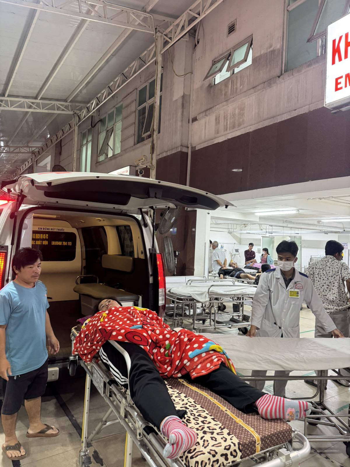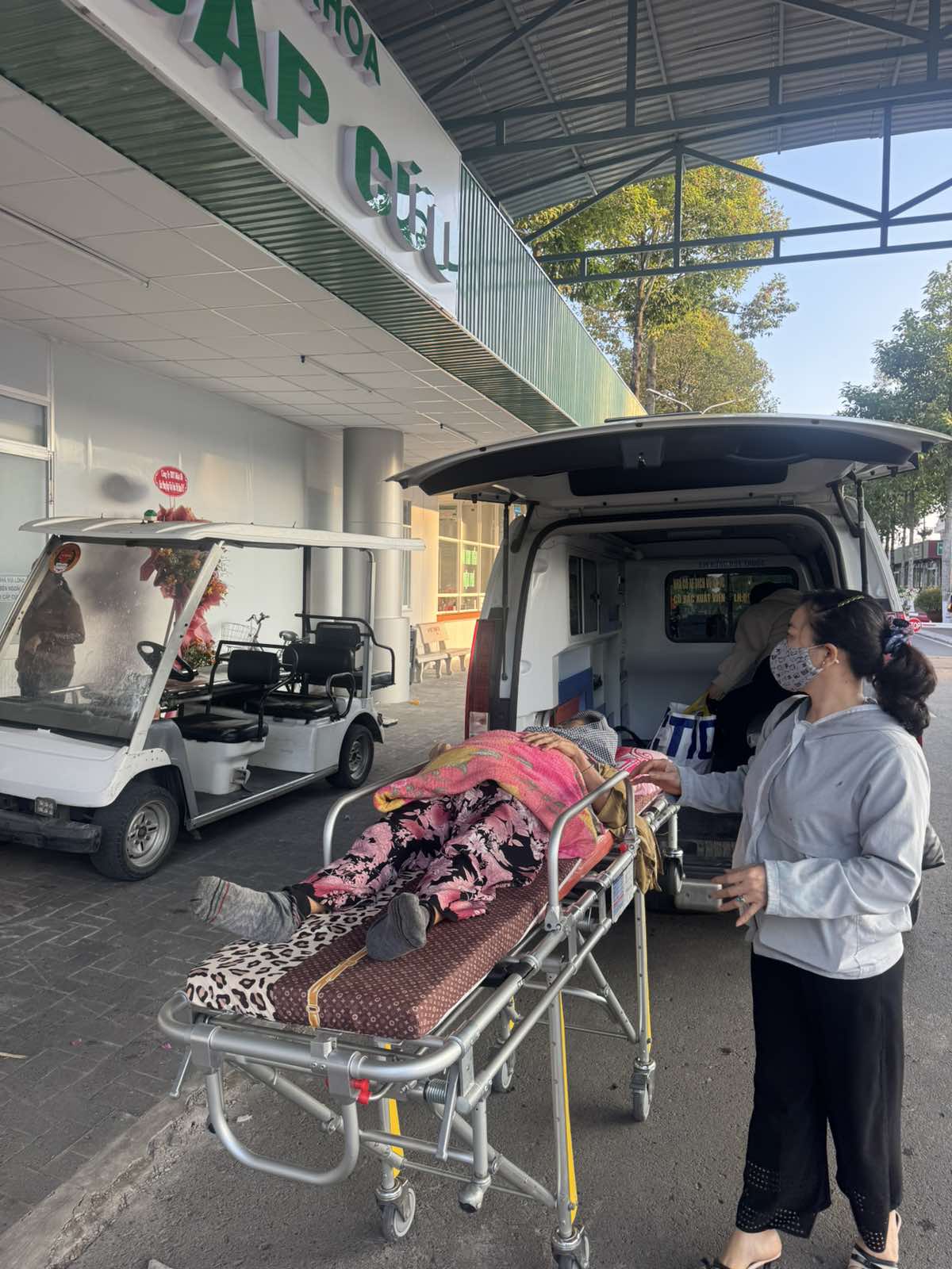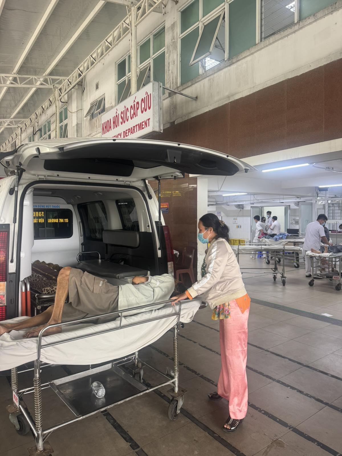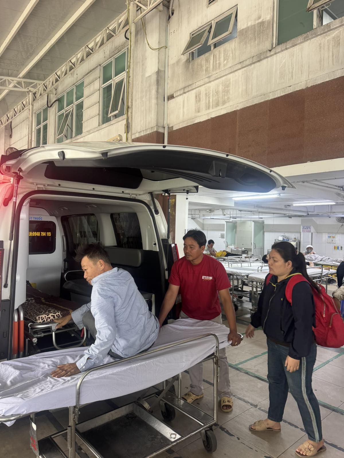 Dưới đây là hình ảnh của từng bệnh nhân lúc lên xe Cấp Cứu và lúc đến nhà thương: