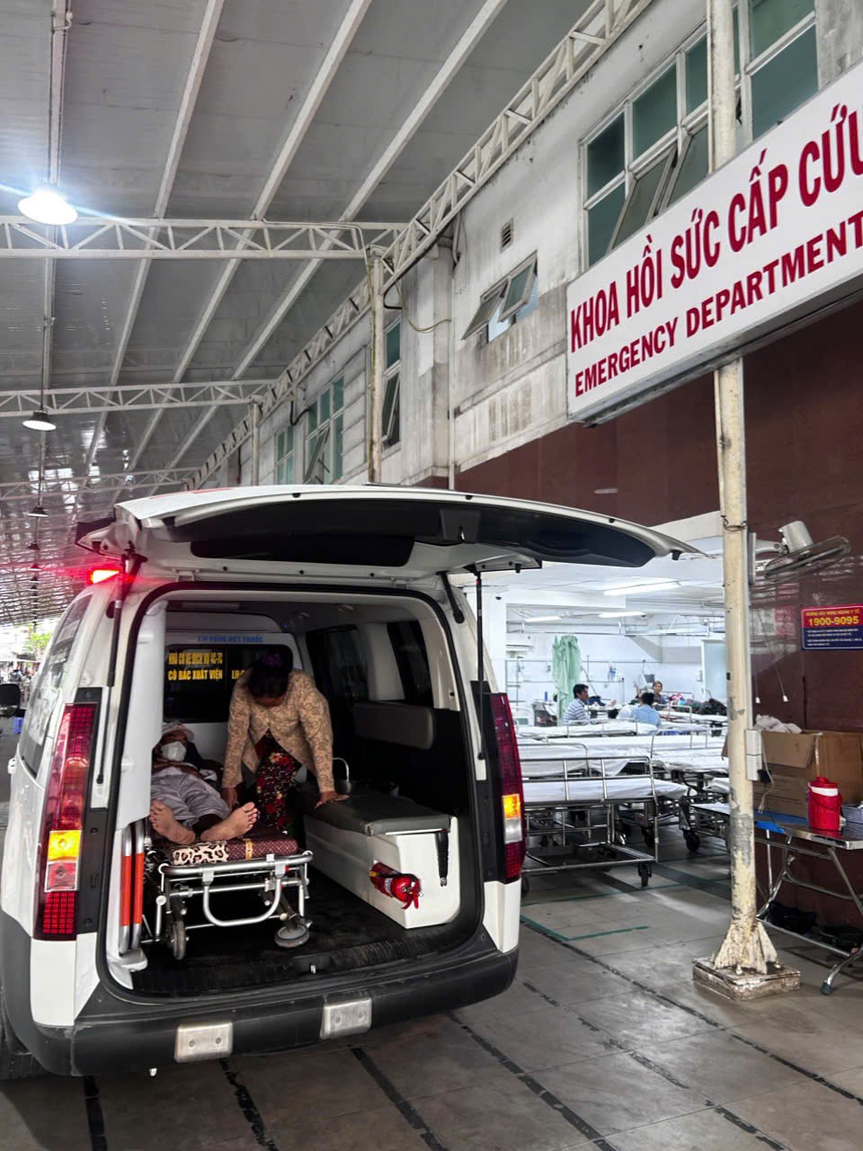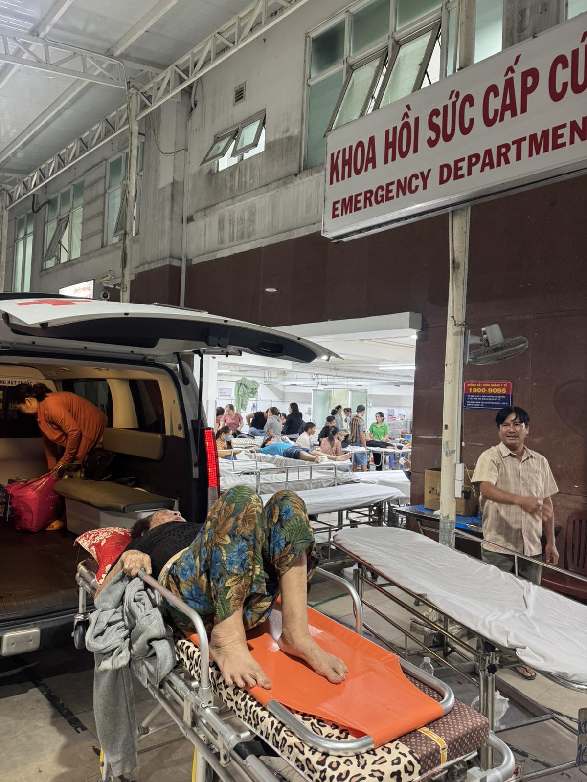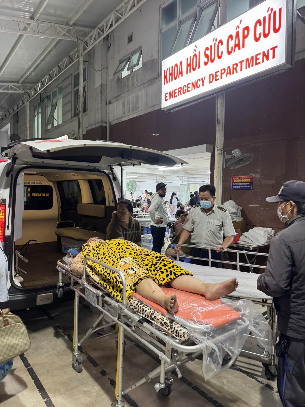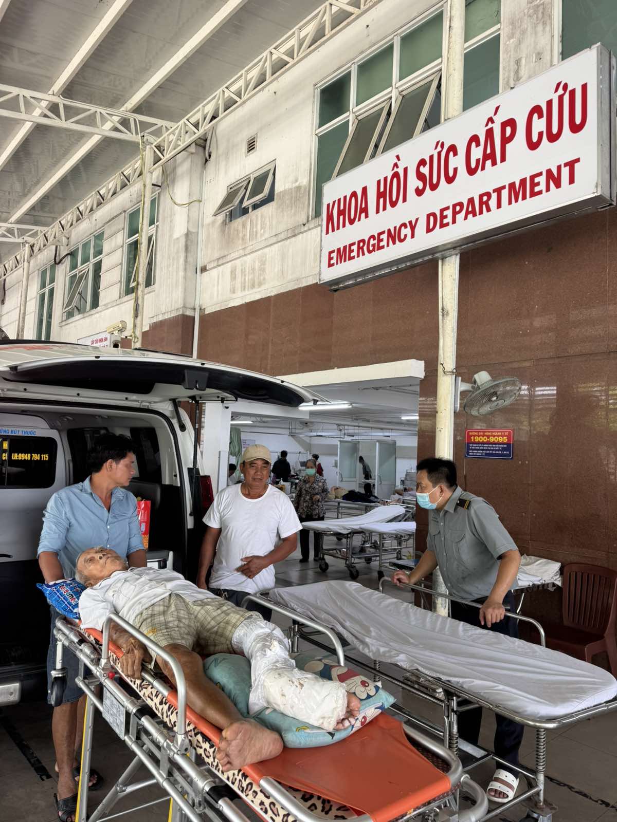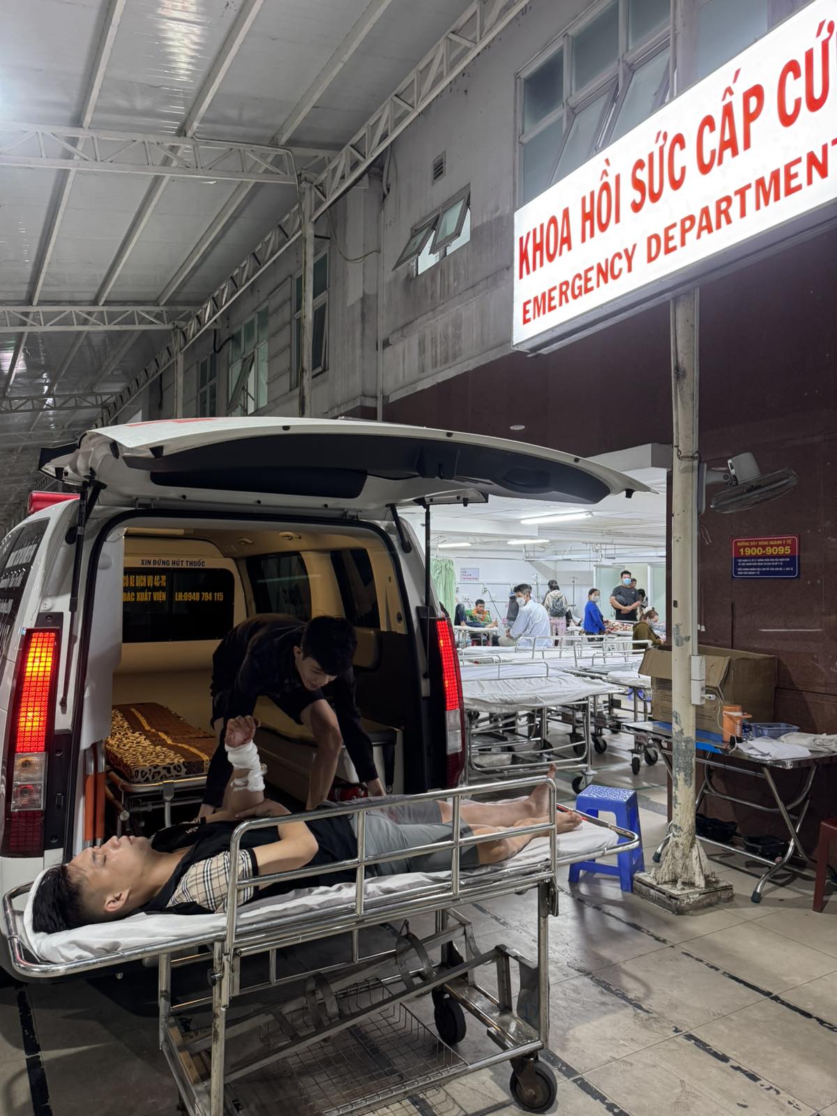 Dưới đây là hình ảnh của từng bệnh nhân lúc lên xe Cấp Cứu và lúc đến nhà thương: