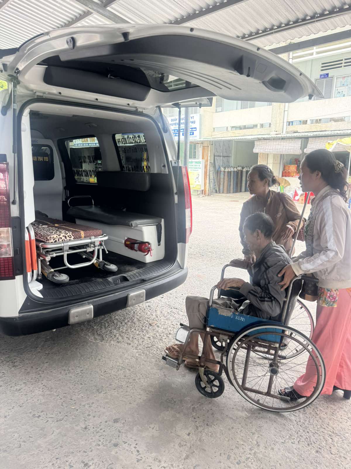 Mrs. Hồ Thị Thuận, 87 years old, lives in Giồng Bàng, Thạnh Phong Commune, Vĩnh Long Province. She was fatigued due to heart failure, and an ambulance took her to 120 Hospital in Tiền Giang at 15:00 on March 1, 2026. She currently lives with her children. She was given one bottle of green medicated oil.
