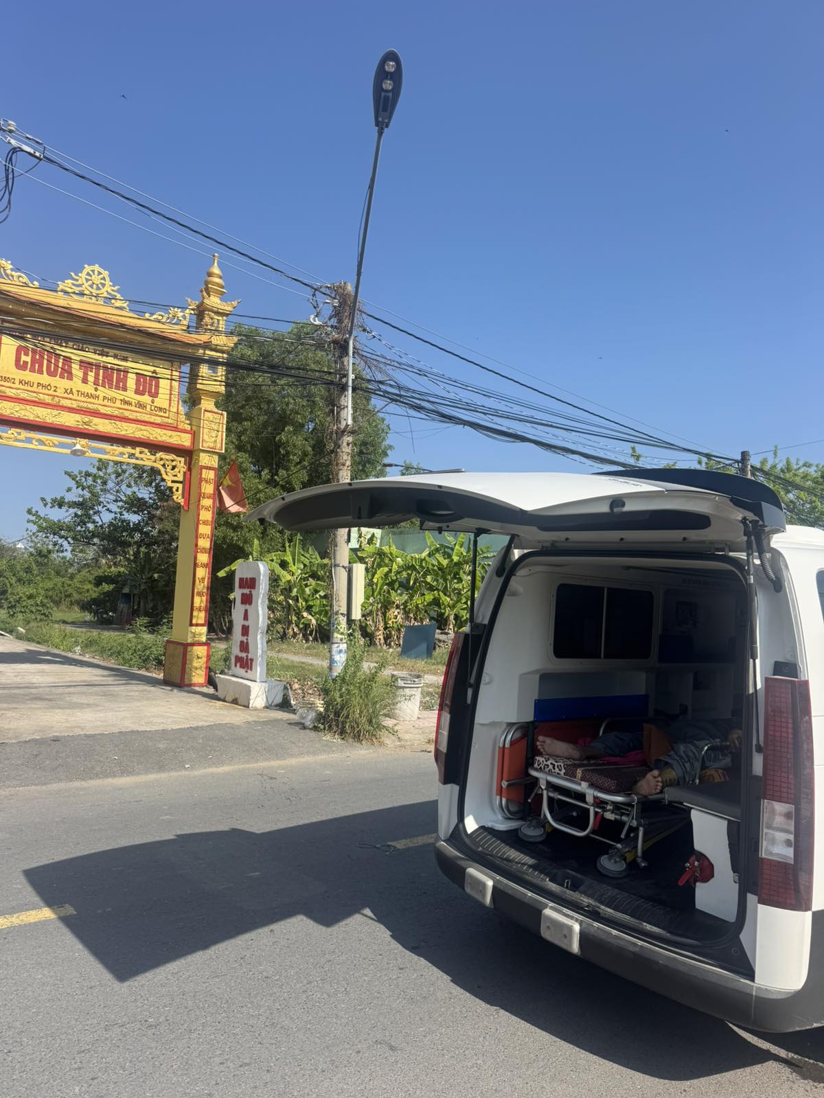Mrs. Nguyễn Thị Như, 55 years old, lives in Hamlet 10, Thạnh Phú Commune, Vĩnh Long Province. She had a stroke, and the hospital sent her home because they could no longer treat her. She was transported from Bến Tre Hospital to Tịnh Độ Thạnh Phú Pagoda at 14:00 on March 14, 2026. She currently lives in the pagoda and has no children or relatives. She was given one bottle of green medicated oil.