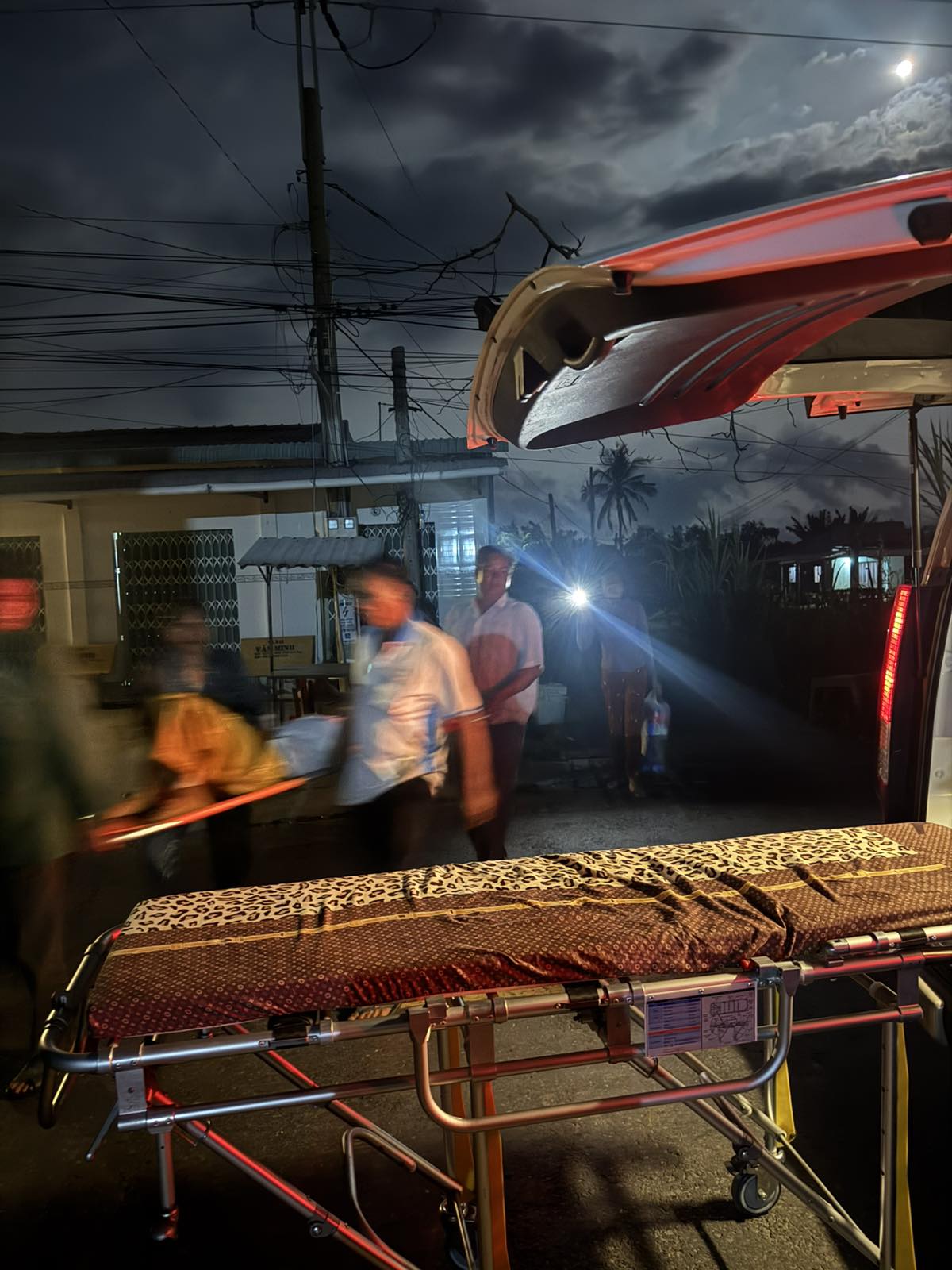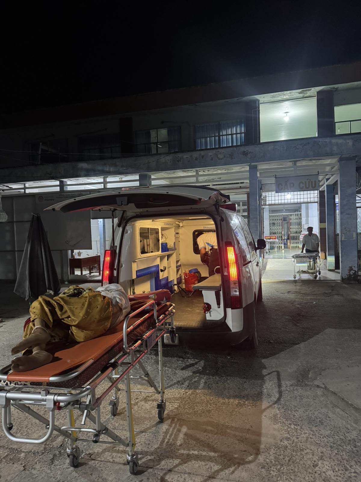 Mrs. Lê Thị Bé Năm, 50 years old, lives in Cồn Bửng, Thạnh Hải Commune, Vĩnh Long Province. She was unconscious due to a motorcycle accident, and an ambulance took her to Bến Tre Hospital at 20:00 on March 9, 2026. She currently lives with her husband and children.