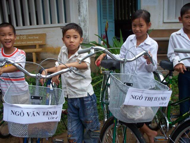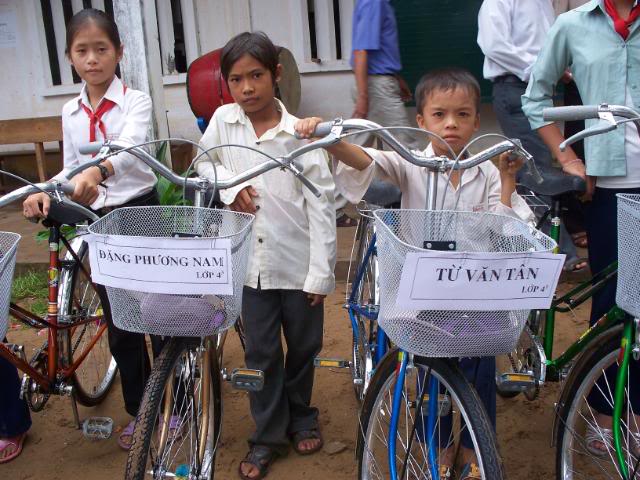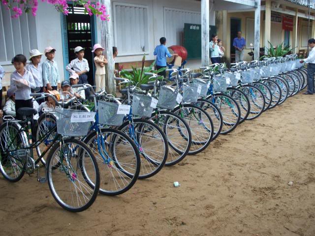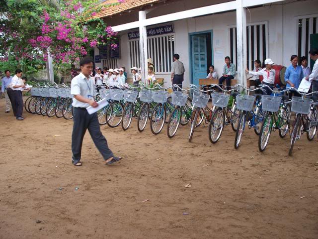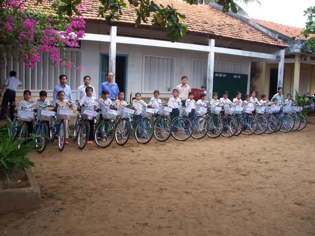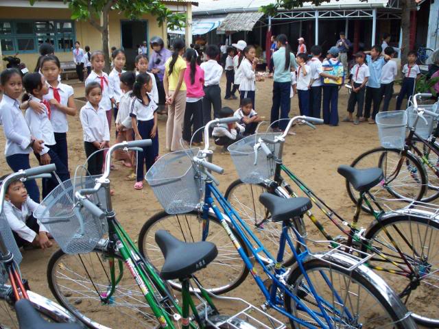 Trường tiểu học Thạnh Phong A (tất cả trường tiểu học xứ Cồn) được 20 chiếc xe đạp: