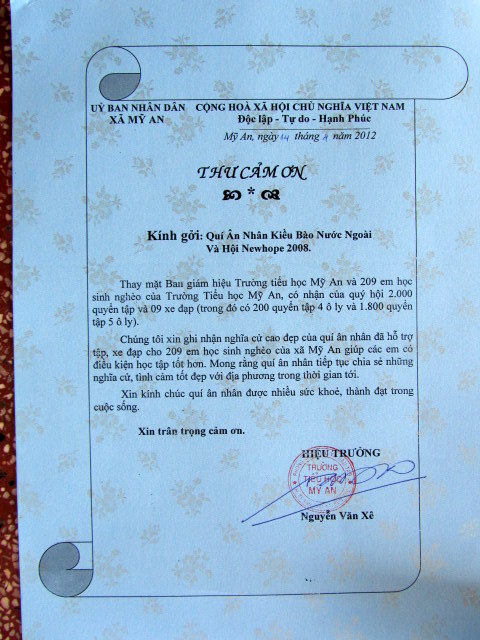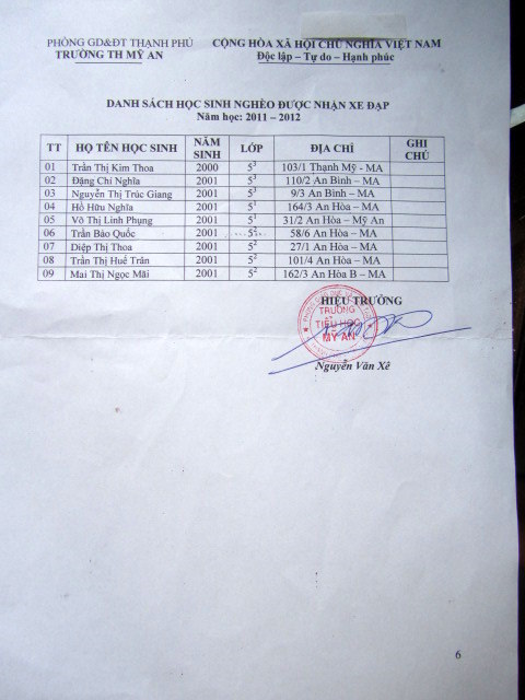 2012 - Phát Xe đạp ở TRƯỜNG CẤP I XÃ MỸ AN, HUYỆN THẠNH PHÚ