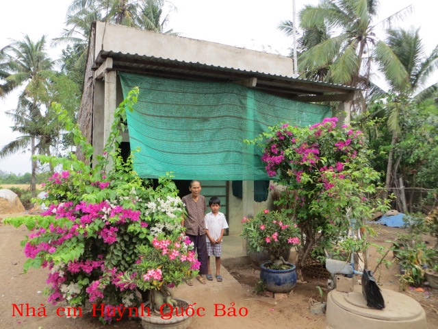 Huỳnh Quốc Bảo lớp 4/1. Cha: Huỳnh Quốc Việt có 3 con, mẹ bỏ. Cha đi bắt nghêu thuê không nhà. Hiện tại em đang sống chung với bà nội ở ấp Thạnh Bình xã Bảo Thuận huyện Ba Tri.