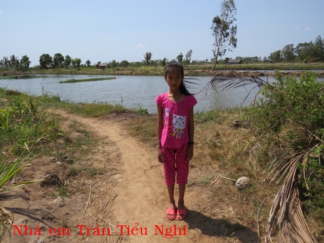 10. Nghi Tieu Tran, 5th grader (class 52), from An Hoi A sub-hamlet, An Thuan hamlet, Thanh Phu district, Ben Tre province. Currently living with father, Phan Van Tran, mother, and 2 siblings. Parents do odd jobs for a living. We could not reach her home due to not being able to cross a canal leading to the home.