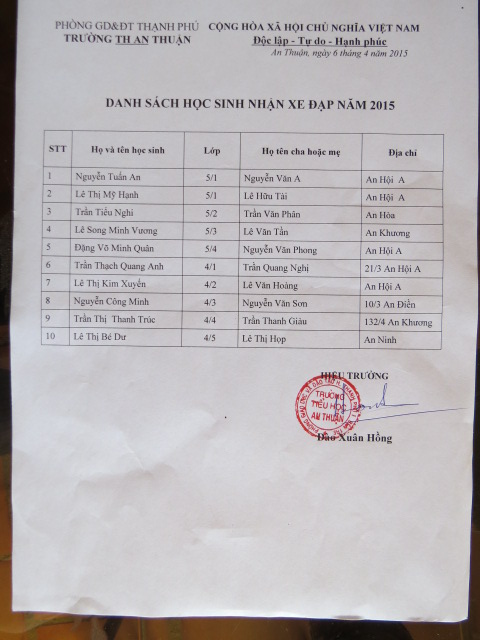 2015 - Bicycles Distribution - An Thuan Elementary School
