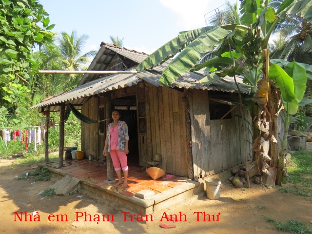 Thu Anh Tran Pham in 3rd grade. Father: Tuan Van Pham has 2 children in Tan Thuan Ngoai Hamlet, Mo Cay Bac District, Ben Tren Province. His parents does odd labor work for a living.