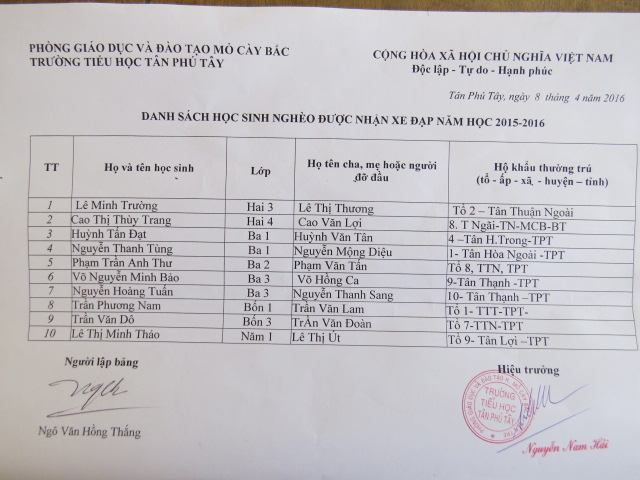2016 - Bicycles Distribution - Tân Phú Tây Elementary