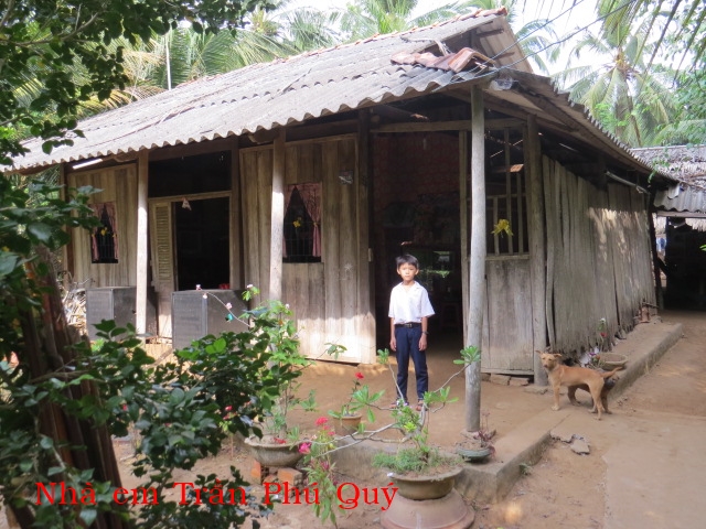 Quy Phu Tran in 6th grade. Father: Guong Van Tran has 2 children in Second Hamlet, Long My Village, Giong Trom District, Ben Tre Province. He lives far from school hence stay in with grandmother. Parent does odd labor work for a living.