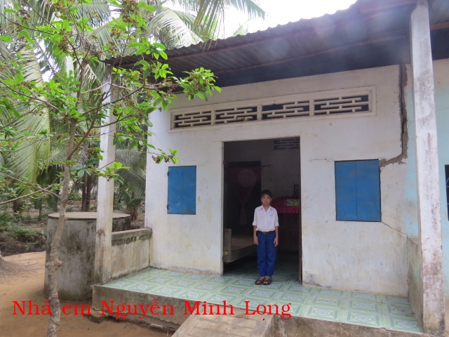 Long Minh Nguyen in 6th grade. Father died. Mother: Mai Thi Nguyen has 2 children in Second Hamlet, Long My Village, Giong Trom District, Ben Tre Province. Mother does odd labor work for a living. Both live with grandmother.