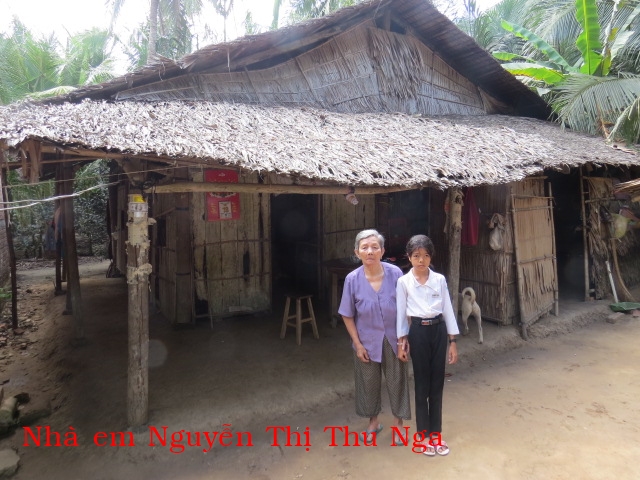 Nga Thu Thi Nguyen 7th grade. Father left her. Mother: Hong Thi Le both live with grandmother in 3rd Hamlet, Long My Village, Giong Trom District, Ben Tre Province. Mother does threading work for a living.