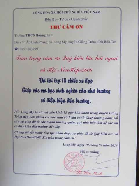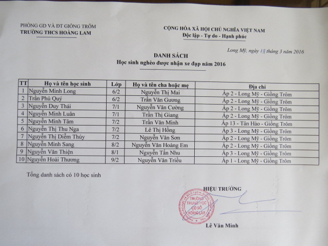 2016 - Bicycles Distribution - Hoàng Lam Junior High