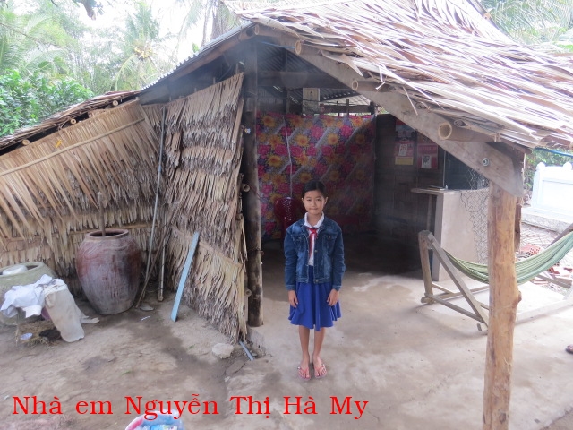 Nguyen Thi Ha My is a 5th grade student. Her father, Nguyen Van Chung, lives in Binh Hoi hamlet, Huyen Hoi village, Tra Vinh district. Every day her parents work for hired.