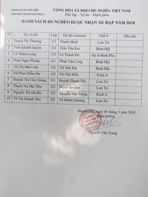 2018 - Bicycles Distribution -Huyen Hoi A Elementary
