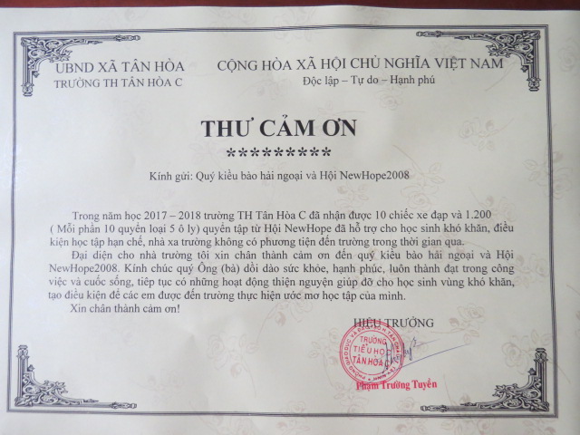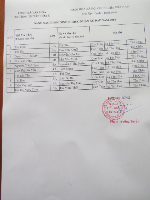 2018 - Bicycles Distribution - Tan Hoa C Elementary