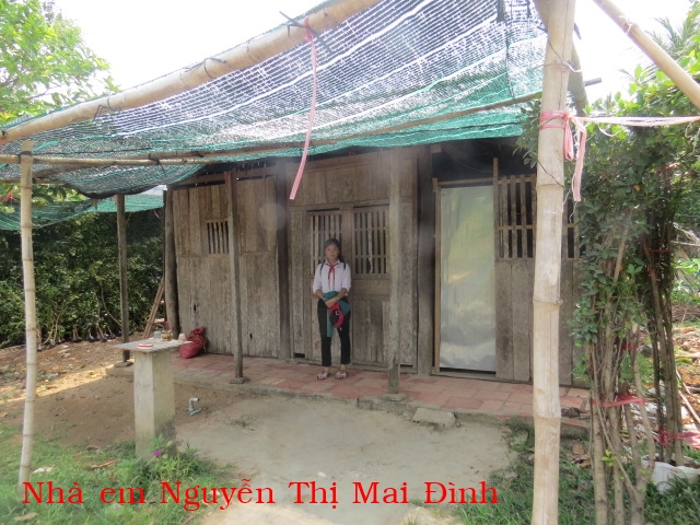 Nguyen Thi Mai Dinh is an 8th grade student. Father, Nguyen Van Tung, has 2 children, living in Cai Tac hamlet, Hung Khanh Trung A village, Mo Cay Bac district, Ben Tre providence. Everyday, her parents hire to potting plants in a vase.