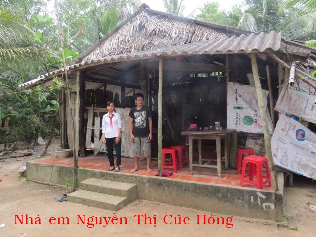 Nguyen Thi Cuc Hong is an 8th grade student. Father, Nguyen Van Toai, has 2 children, living in Thanh Dien hamlet, Hung Khanh Trung A village, Mo Cay Bac district, Ben Tre providence. Her father has cripple feet and can not do heavy work. Her mother works whatever job is available.