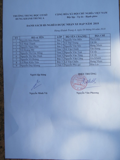 2018 - Bicycles Distribution - Hung Khanh Trung A Junior High