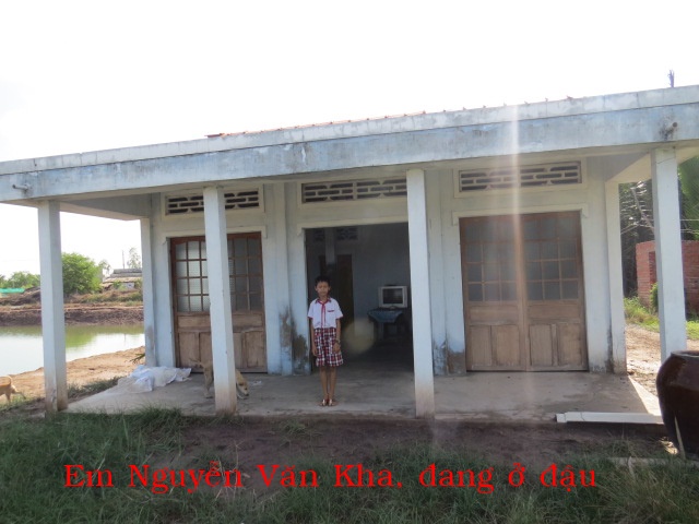 Nguyen Ngoc Kha, 5th grade – Father, Nguyen Ngoc Bup, and wife have 3 children, residing in An Ngai B hamlet, An Thanh village, Thanh Phu district, Ben Tre providence. His father has a job, and mother works whatever job is available.
