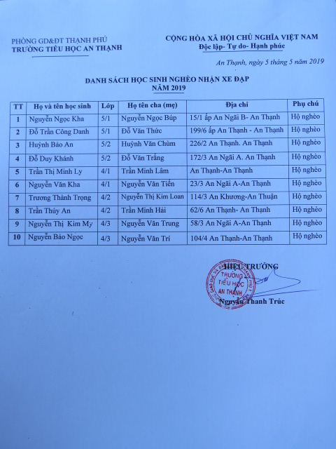 2019 - Bicycles Distribution - TRƯỜNG CẤP 1 XÃ AN THẠNH - An Thanh Elementary school