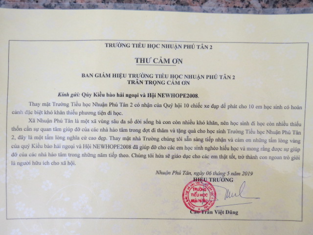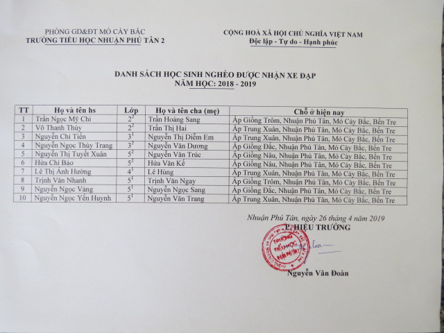 2019 - Bicycles Distribution - TRƯỜNG TIỂU HỌC NHUẬN PHÚ TÂN 2 - Nhuan Phu Tan Elementary school