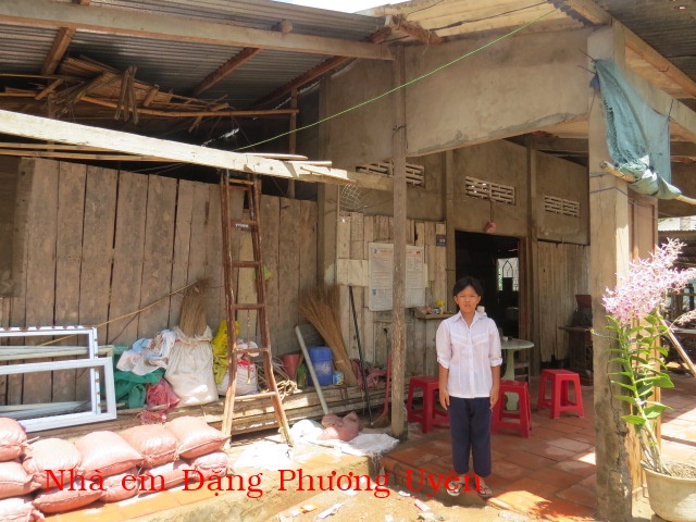 Dang Phuong Uyen, 5th grade – Father left with mother, Pham Thi Thanh Nga. She’s living with her stepfather, residing in 4 hamlet, Phong Nam village, Giong Trom district, Ben Tre providence. Her parents work whatever job is available.